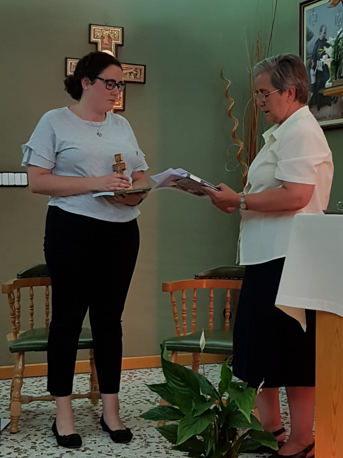 Así, el 28 de agosto ha entrado al Noviciado. Ha sido en nuestra casa de Daimiel, en una bonita celebración en la que ha estado acompañada de su comunidad, de algunas hermanas de las comunidades cercanas, de Mª Luisa González, su formadora, y de las hermanas del Gobierno General M. Marivi de la Torre y M. Mª Luisa Domínguez, quien la ha aceptado y acogido en nombre del Instituto en su entrada en esta nueva etapa.