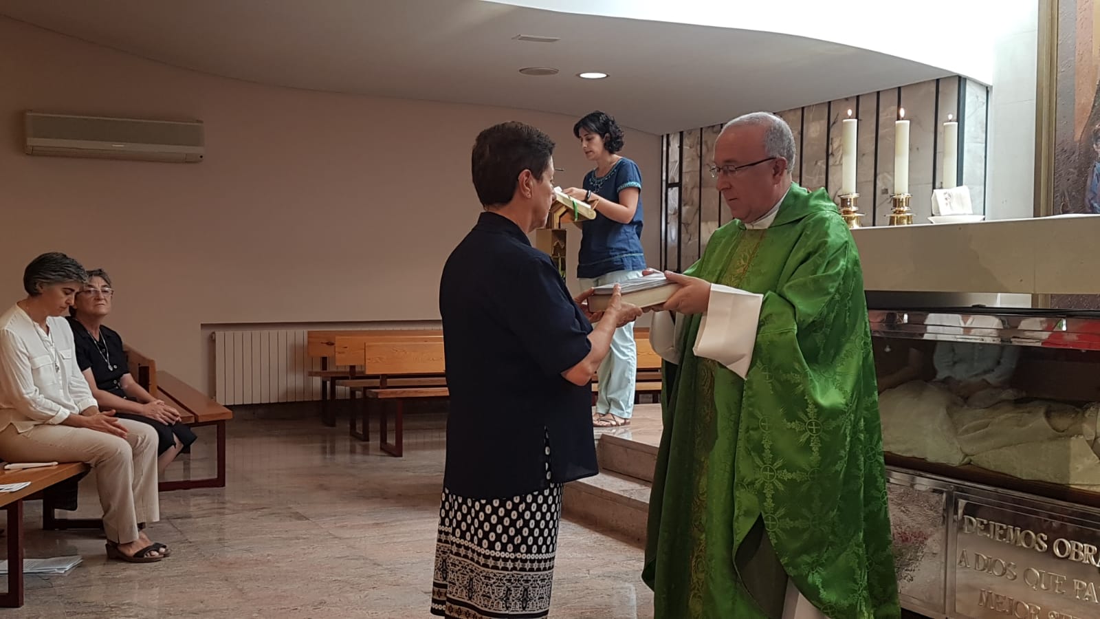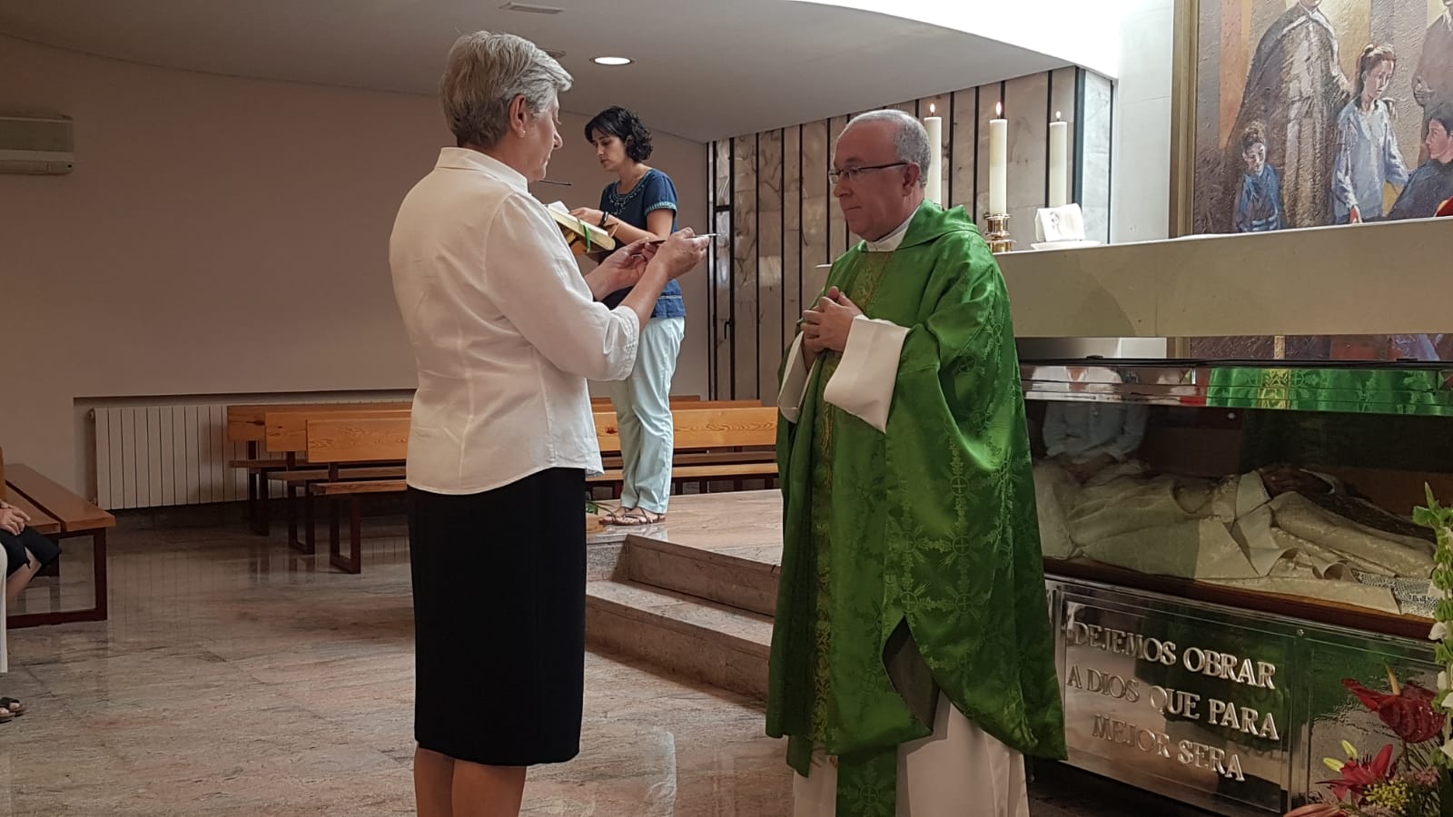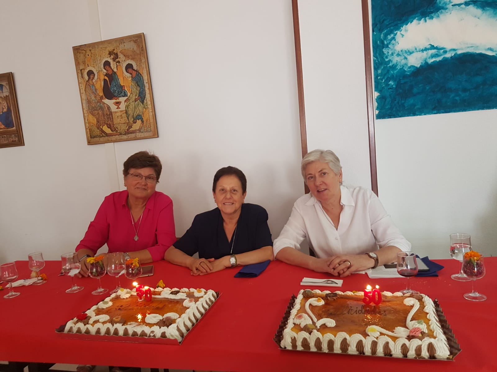 D. José Mª Avendaño, vicario general de la diócesis de Getafe, ha presidido la eucaristía y acompañaron las hermanas que se encontraban en el curso de formación permanente, así como M. Mª de la Villa de la Torre y M. Amanda Valdés, en representación del Equipo General. Toda la Congregación ha estado presente en la oración, en la eucaristía y en el festejo de la mesa.