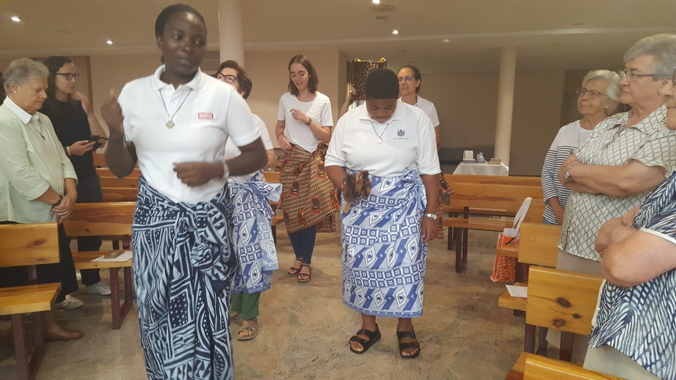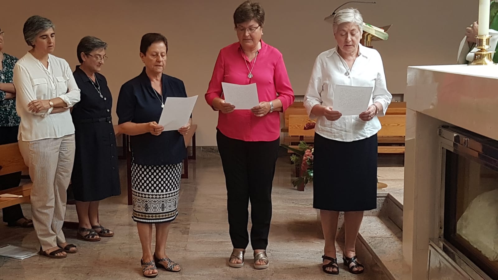 Nuestras hermanas Consuelo González, Felisa Santos, Julita Castellanos, Mª Luisa Domínguez y Regla Sanjosé, (estas dos últimas actualmente en Camerún y Guinea, respectivamente) celebran hoy 1 de septiembre las bodas de oro de su primera profesión. Por tal motivo, se ha celebrado una Eucaristía, acción de gracias por excelencia, en la Capilla de San Faustino.
