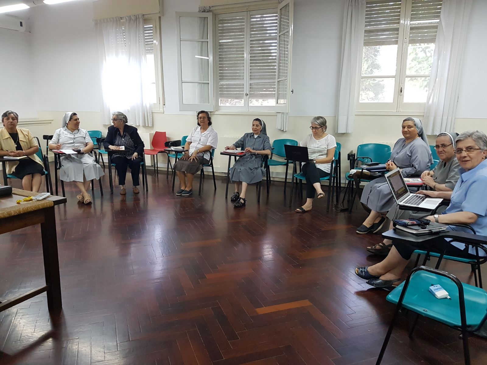 Estos días, M. Sacramento Calderón y M. Mª Luisa Domínguez se encuentran en Buenos Aires (Argentina), donde están dinamizando, junto al P. Marcelo Benítez, Sch.P., el encuentro de formación permanente del sector ACHU, que gira en torno a la espiritualidad y la historia calasancia.
