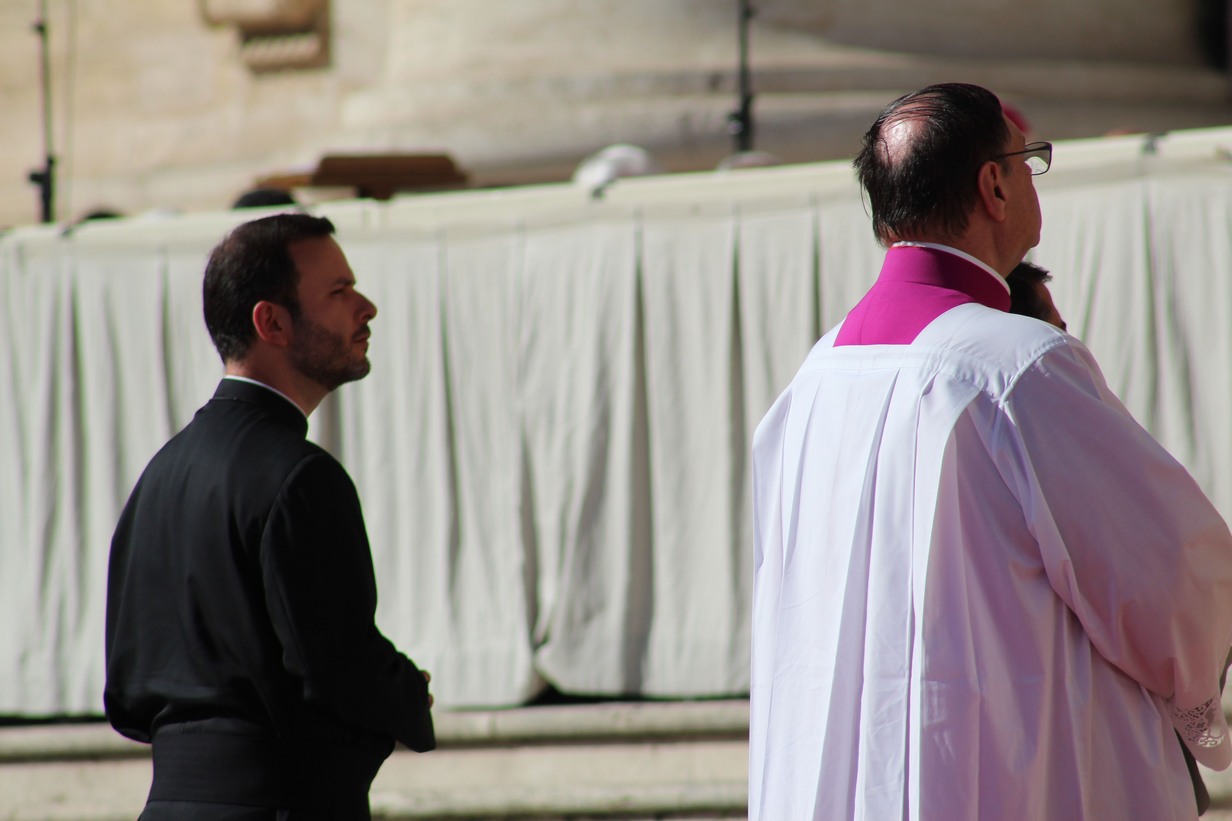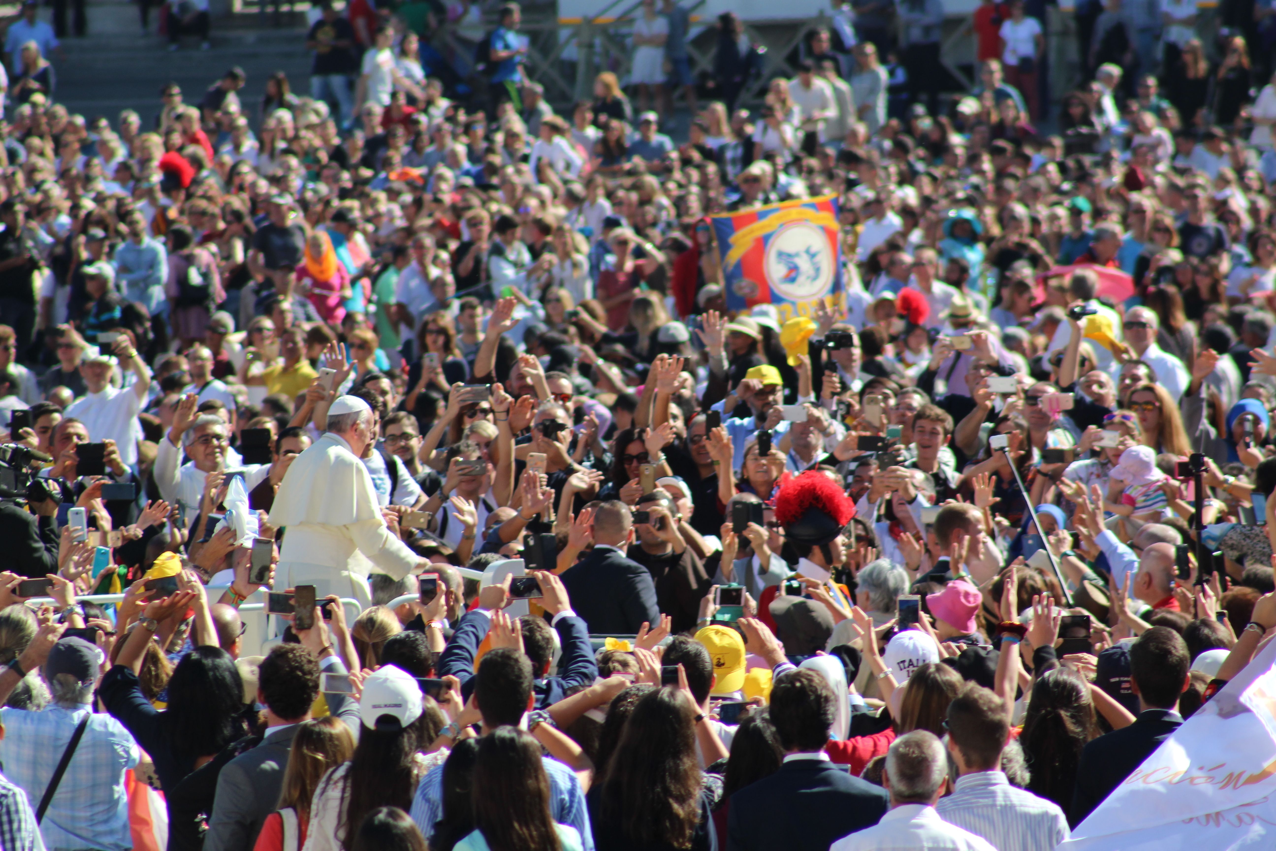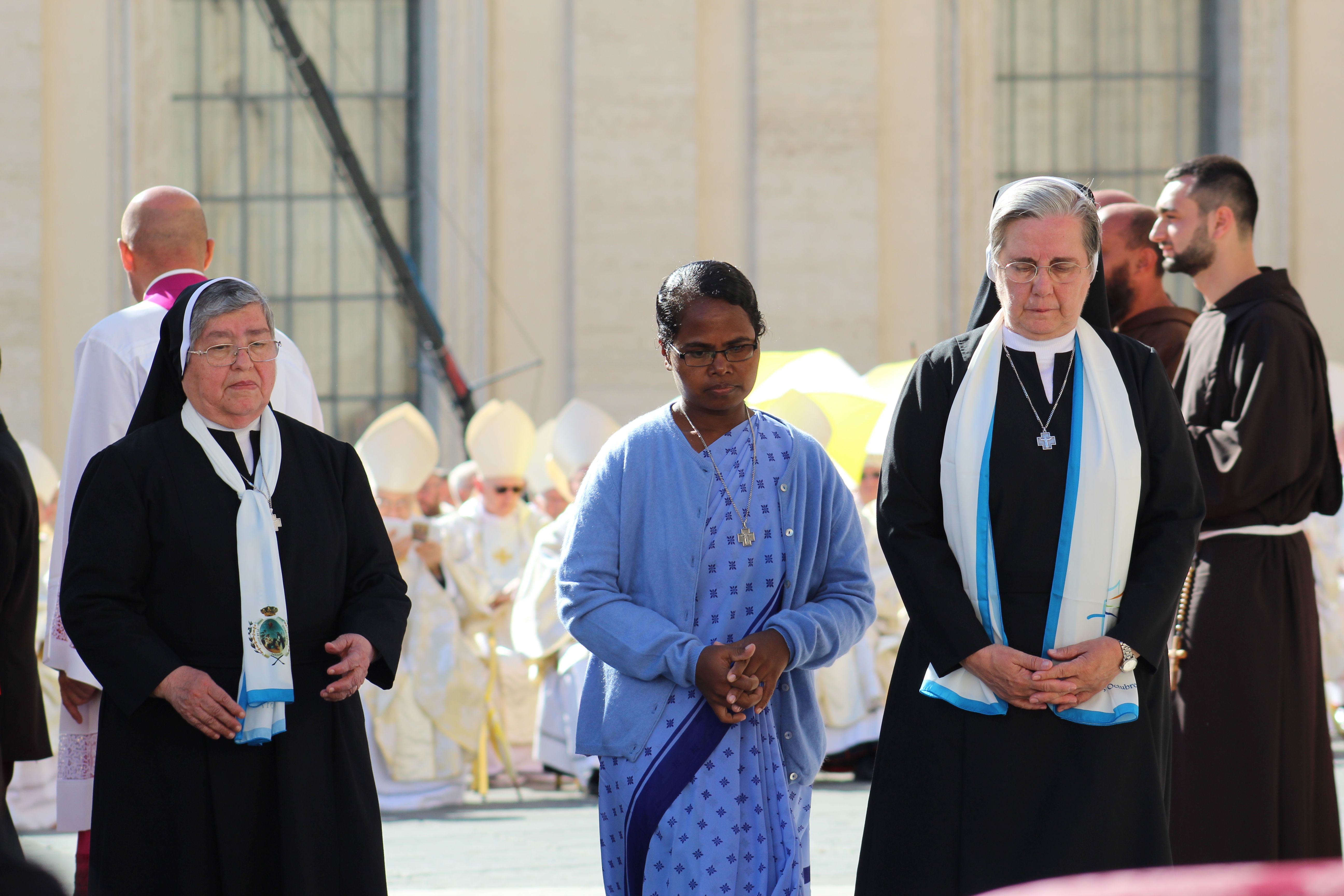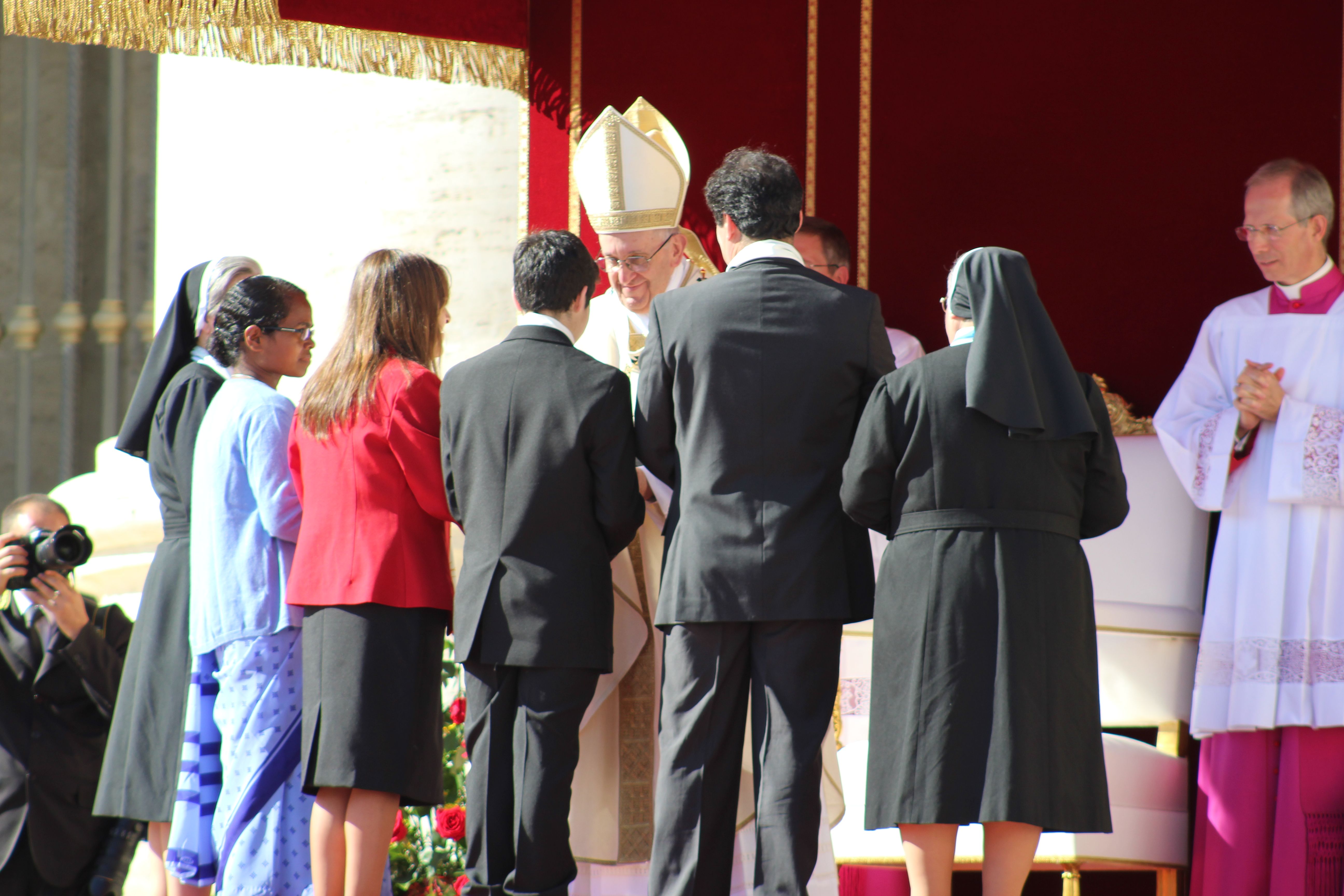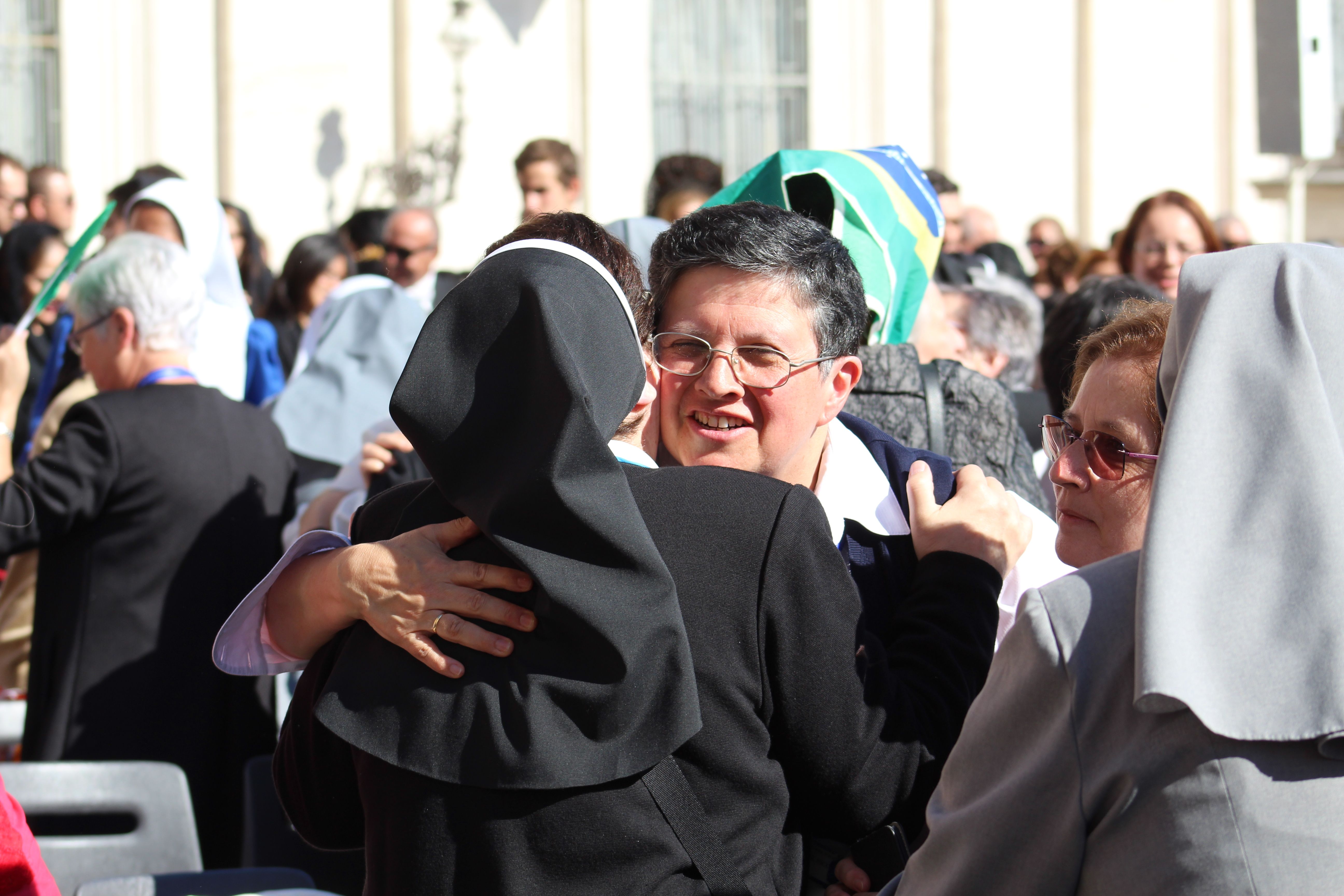 Poco a poco los grupos de religiosas y laicos calasancios llegados desde España, América, África e India hemos ido ocupando nuestro lugar en la plaza ya presidida por la imagen del nuevo Santo.