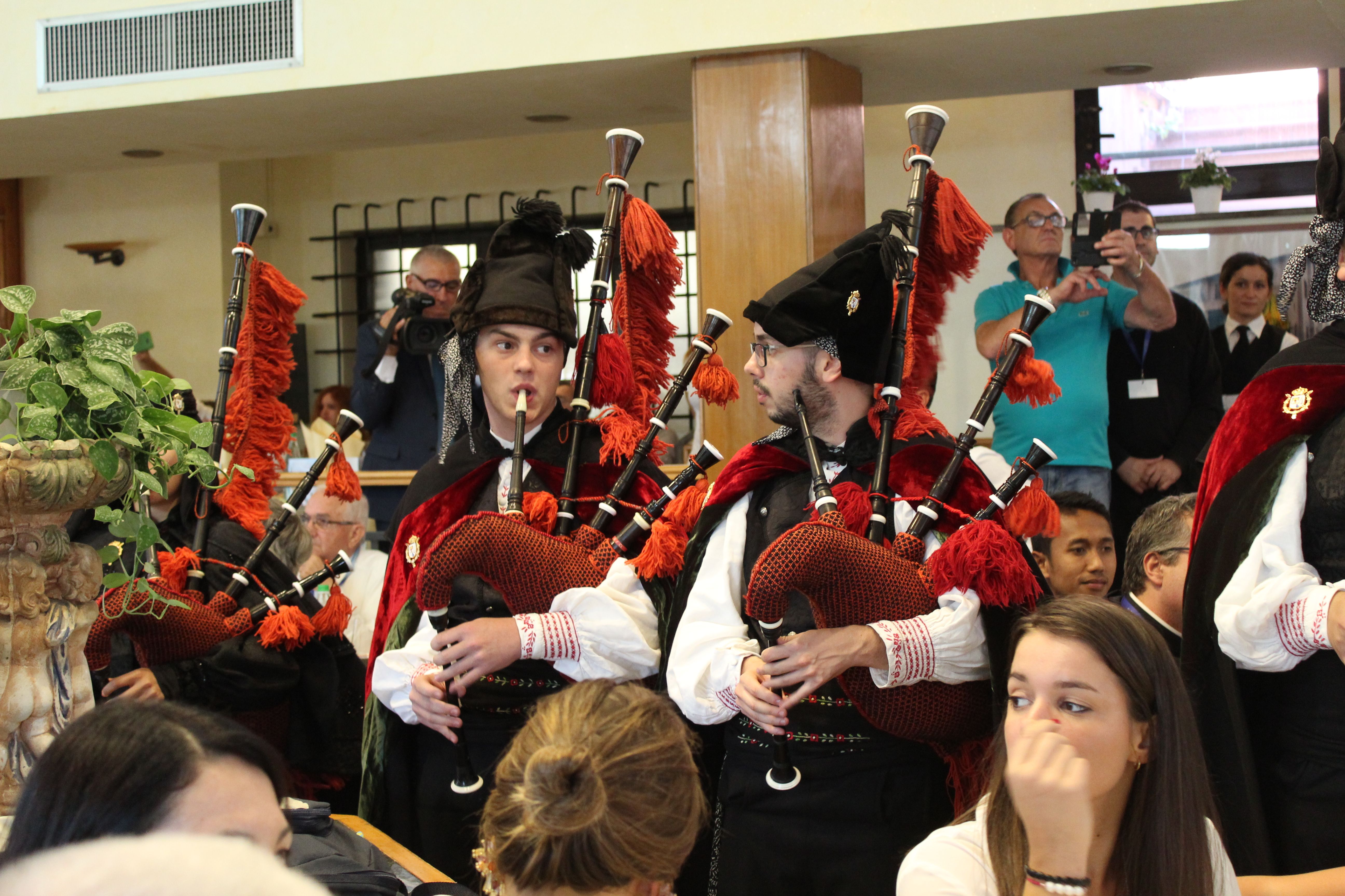 Durante la comida, la Real Banda de Gaitas de Ourense nos ha sorprendido con la interpretación de varias piezas musicales, entre las que han destacado el Himno al Papa Francisco y el Himno del Antiguo Reino de Galicia.
