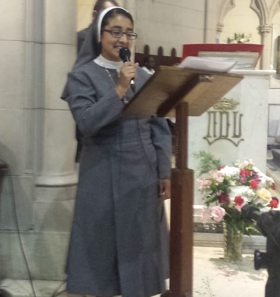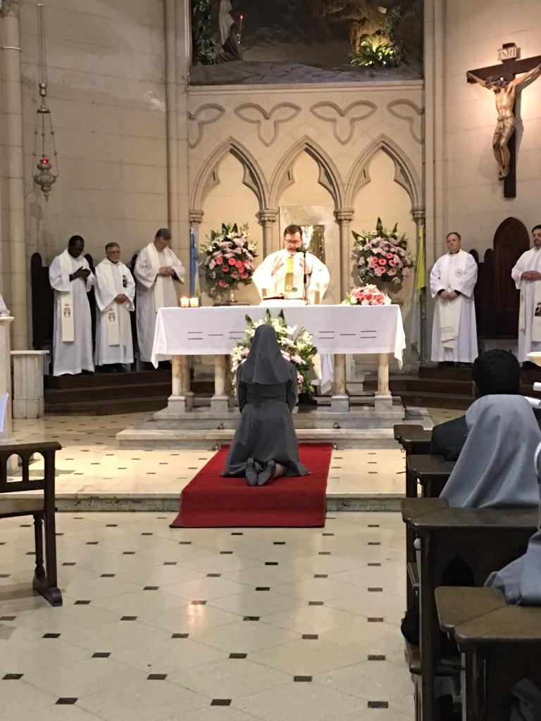 El día 15 de octubre, primer aniversario de la canonización de nuestro fundador, en Buenos Aires, parroquia de Nuestra Señora de Lourdes, hizo su profesión de votos perpetuos nuestra hermana Leidy Johana Quemba. Recibió la profesión nuestra superiora general, M. Sacramento Calderón. La acompañaron sus padres y su hermana, nuestras hermanas de Argentina y Uruguay, profesores, amigos, compañeros, una gran familia que se une para dar gracias al Señor por el camino de fidelidad de Dios, y de nuestra hermana.