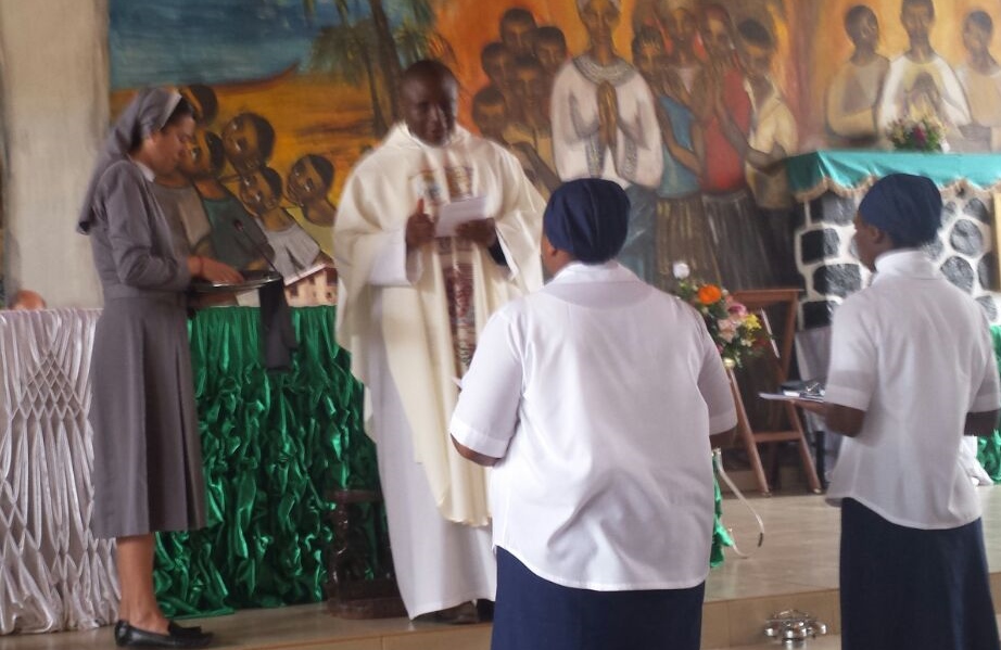 …día tras día el Señor iba agregando al grupo a los que se iban salvando (Hch 2,47)El recuerdo de las primeras comunidades cristianas viene a nuestra mente y una vez más, nuestro agradecimiento y alabanza se eleva al Señor porque también nuestra comunidad calasancia en África se siente bendecida con el aumento de jóvenes que se consagran a Dios en el Instituto Calasancio.Hoy damos gracias a Dios por Justine y por Mary. Ellas han sentido la llamada del Señor y, después de realizar su etapa de formación inicial, pronuncian su Sí al Señor al hacer la profesión temporal como religiosas calasancias. Desde hoy vivirán únicamente para Dios y su proyecto será el proyecto de Jesús, el Reino de Dios.Recibe la profesión M. Sacramento Calderón, Superiora General. Participan en la celebración todas las religiosas de la comunidad y de la comunidad de Yaoundé.