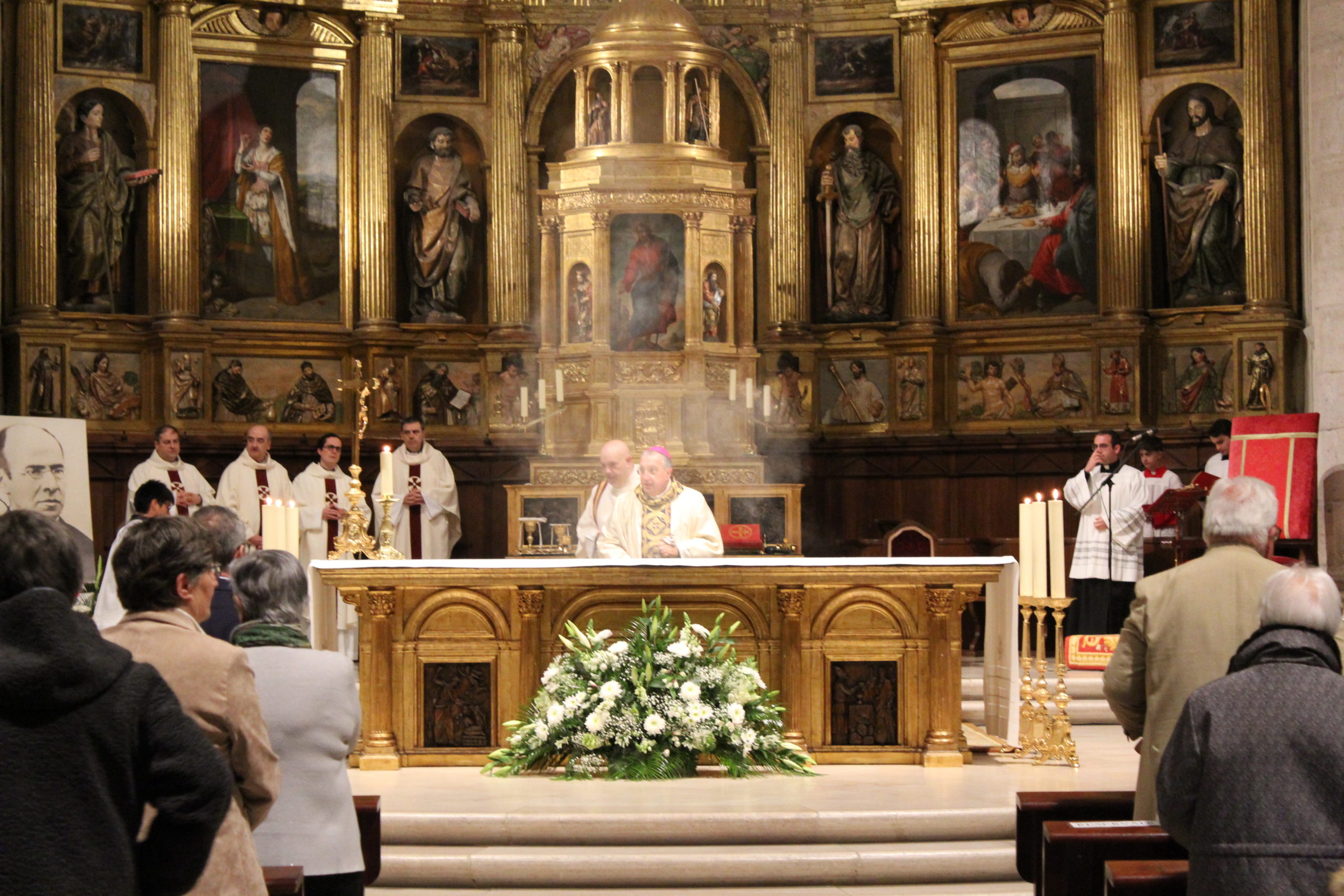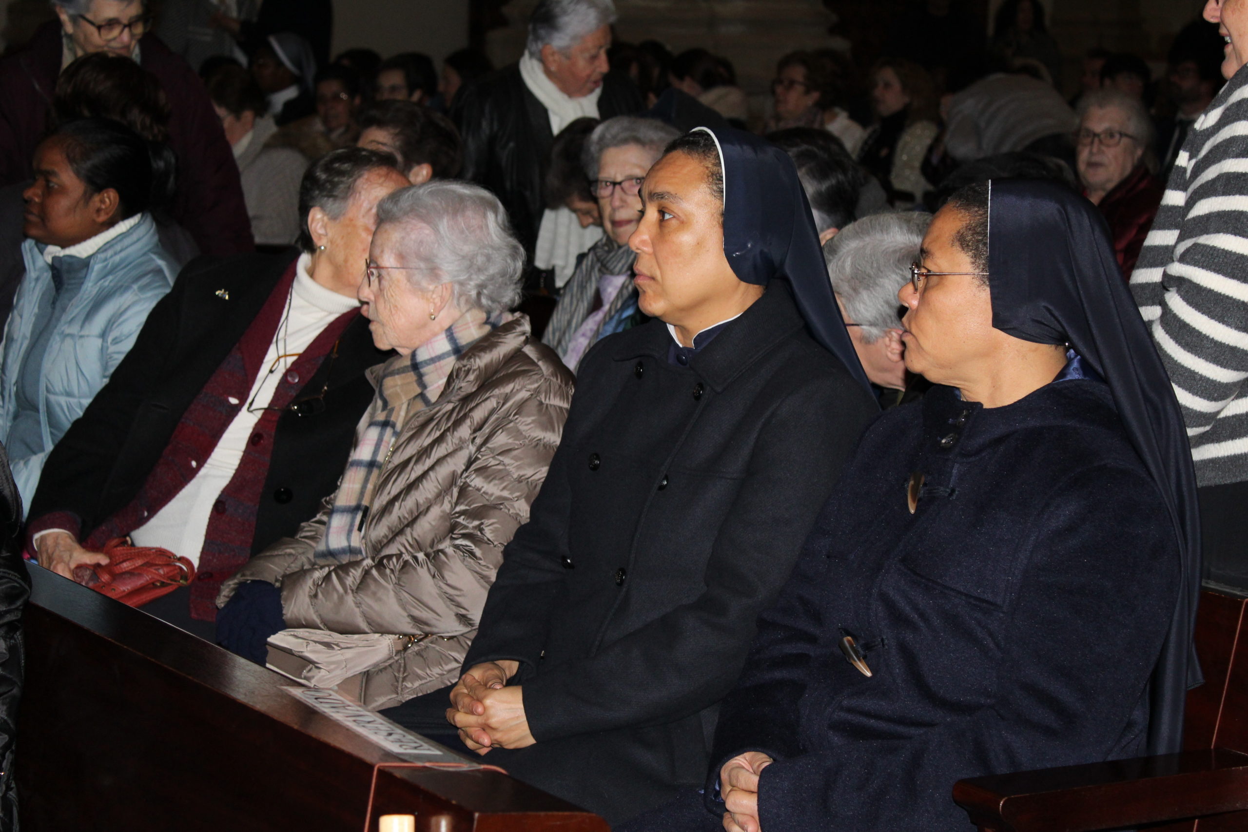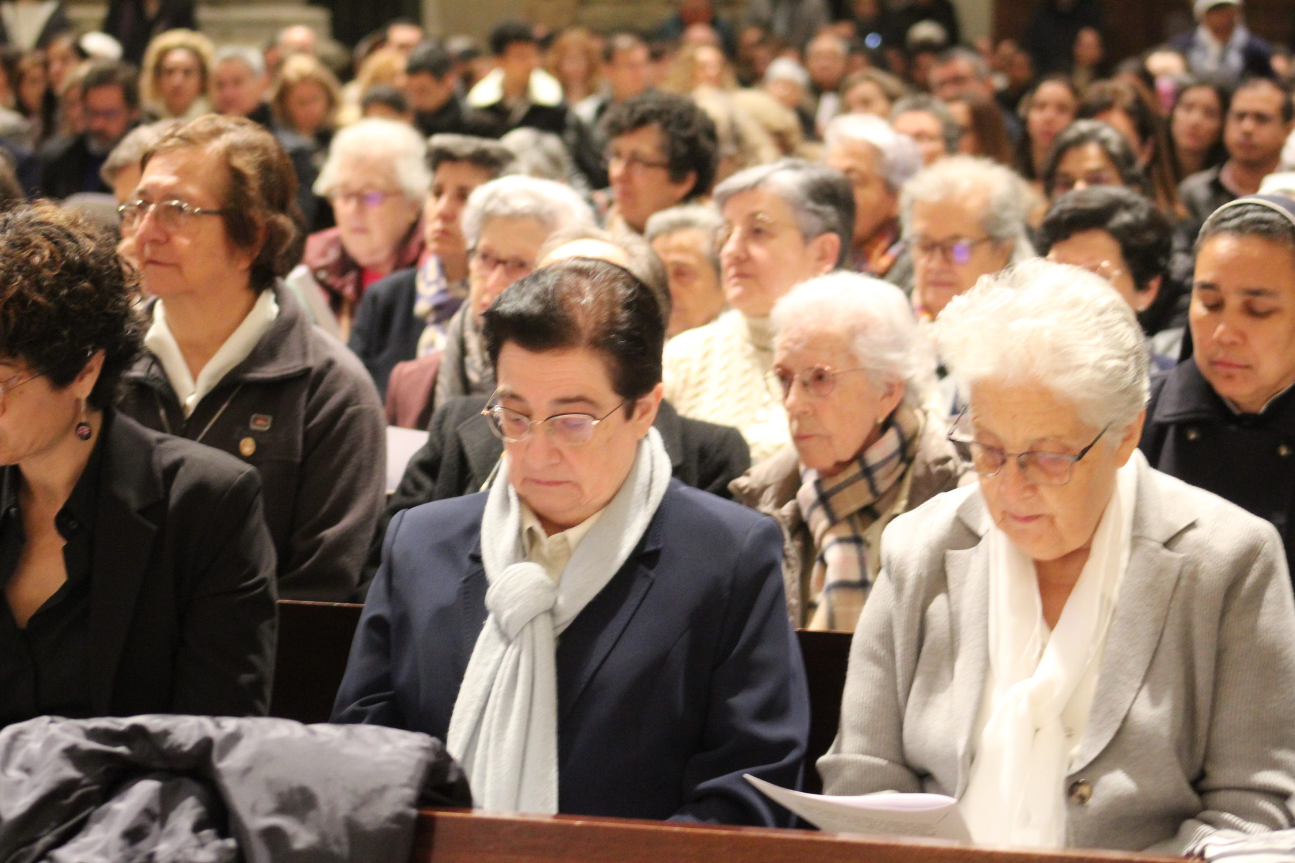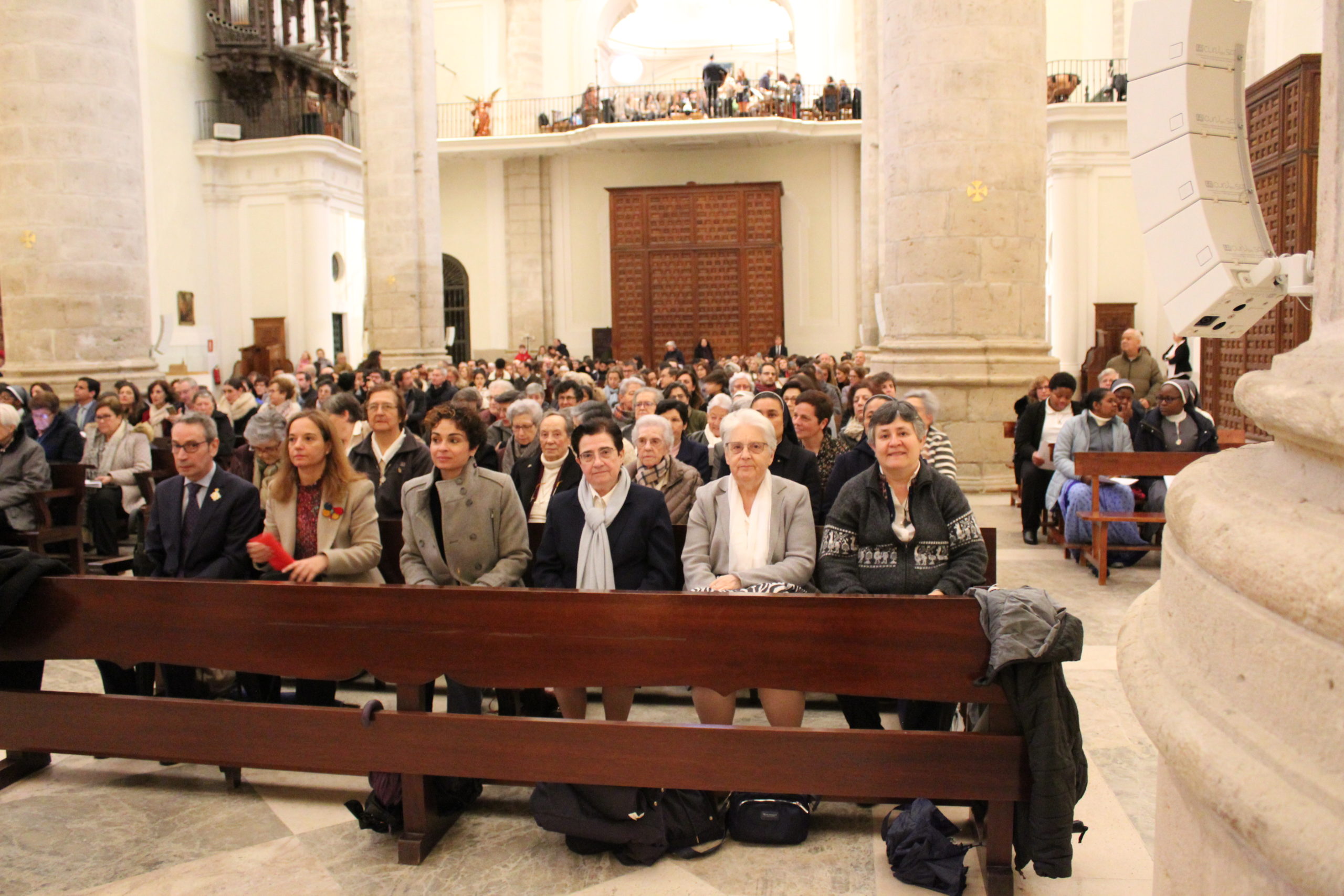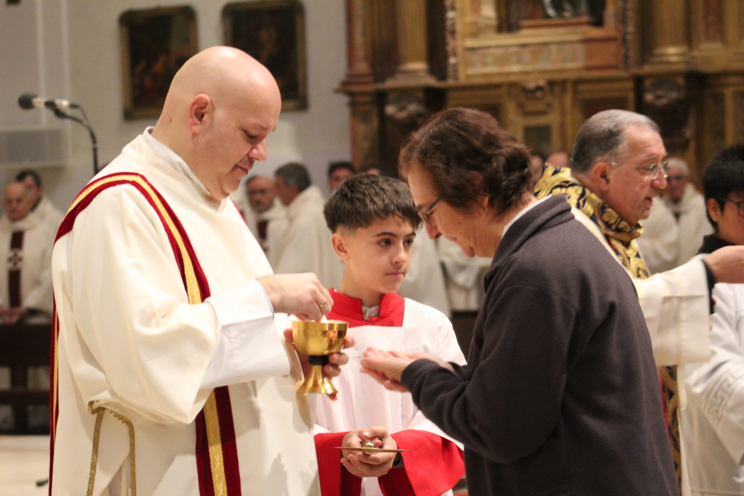 A pesar del clima adverso, la celebración estuvo marcada por una gran participación y alegría. Los actos oficiales comenzaron a las 10:00 h con una solemne Eucaristía en la Catedral de Santa María Magdalena de Getafe, presidida por el obispo D. Ginés García Beltrán. En la ceremonia estuvieron presentes el P. General Pedro Aguado, Escolapios de las comunidades de Getafe y Madrid, sacerdotes diocesanos, autoridades civiles, representantes de la Iglesia local y de la Hermandad de Nuestra Señora de los Ángeles, diversas congregaciones calasancias, el Equipo del Gobierno General del Instituto, las Delegadas de los tres Sectores del Instituto, religiosas y laicos calasancios, alumnos, profesores y familias. El coro del Colegio Divina Pastora acompañó la celebración con interpretaciones musicales llenas de sensibilidad y emoción.