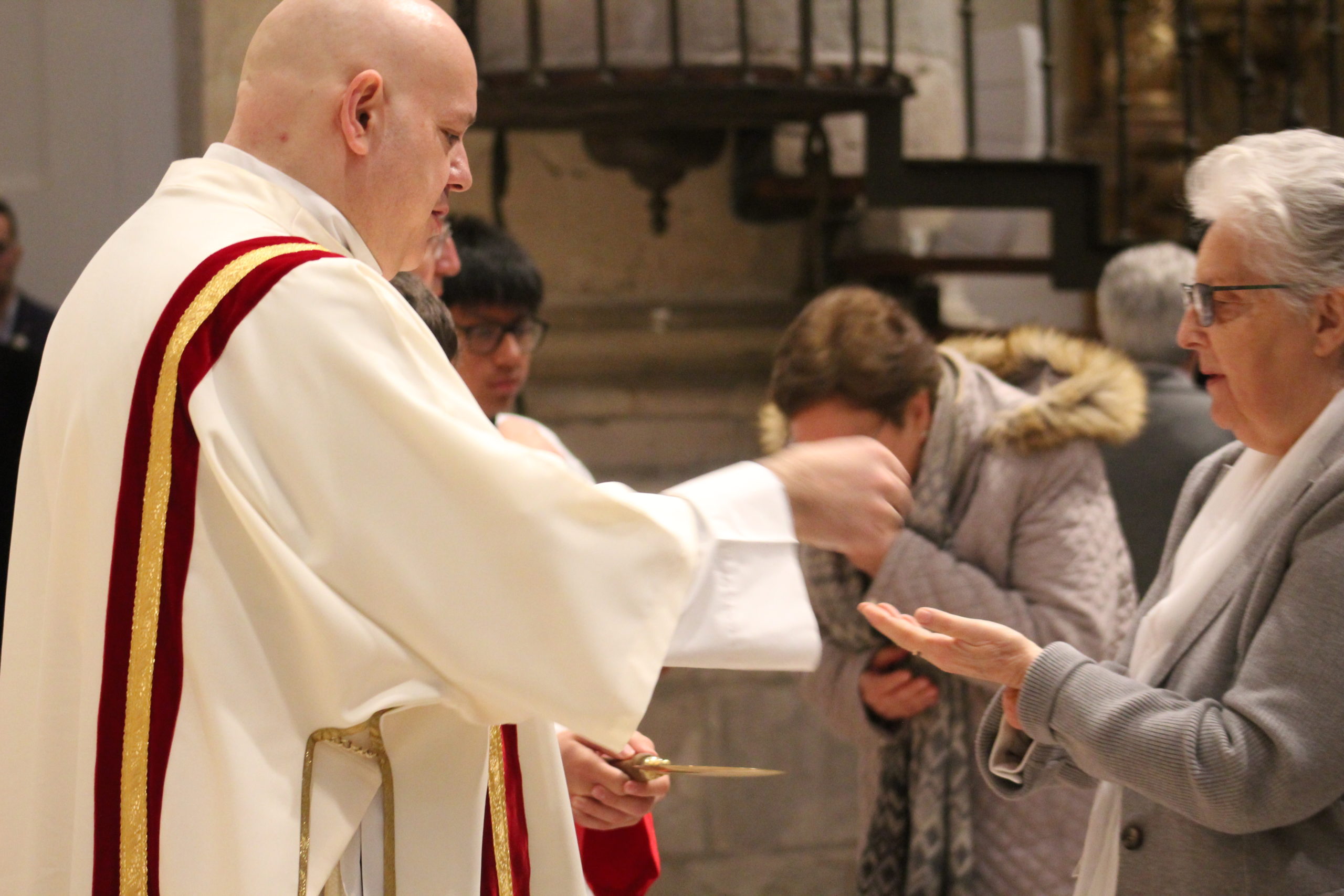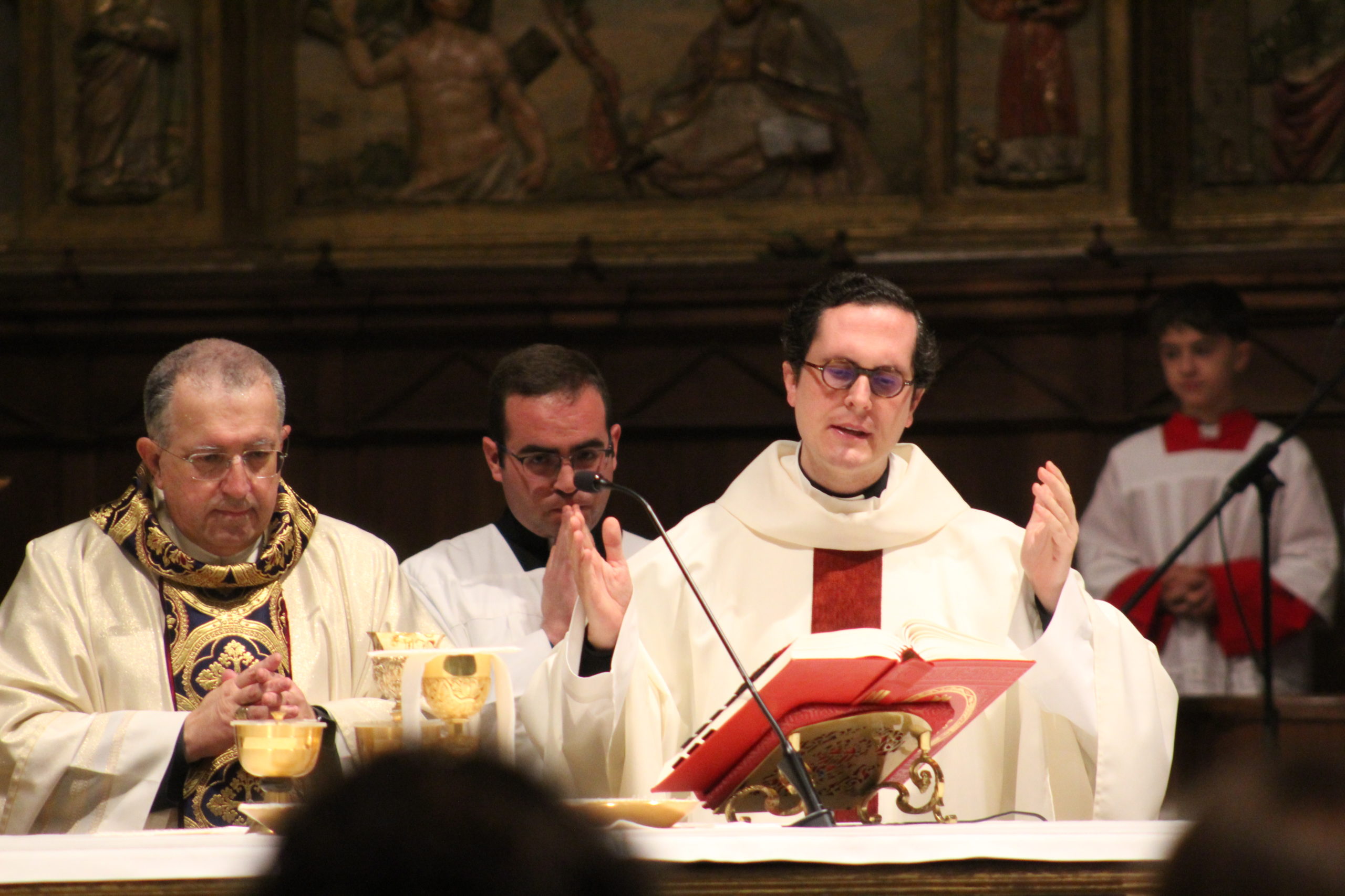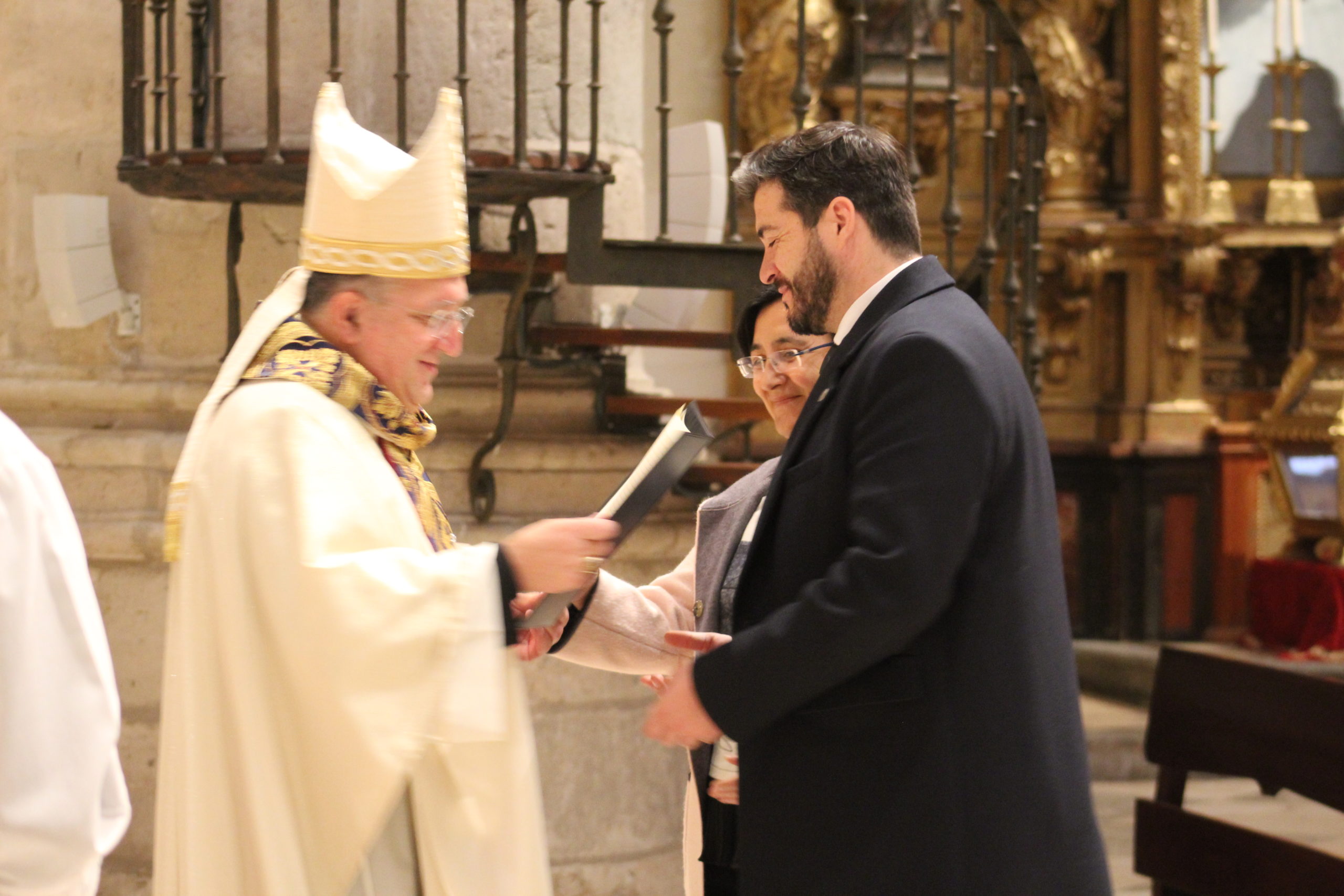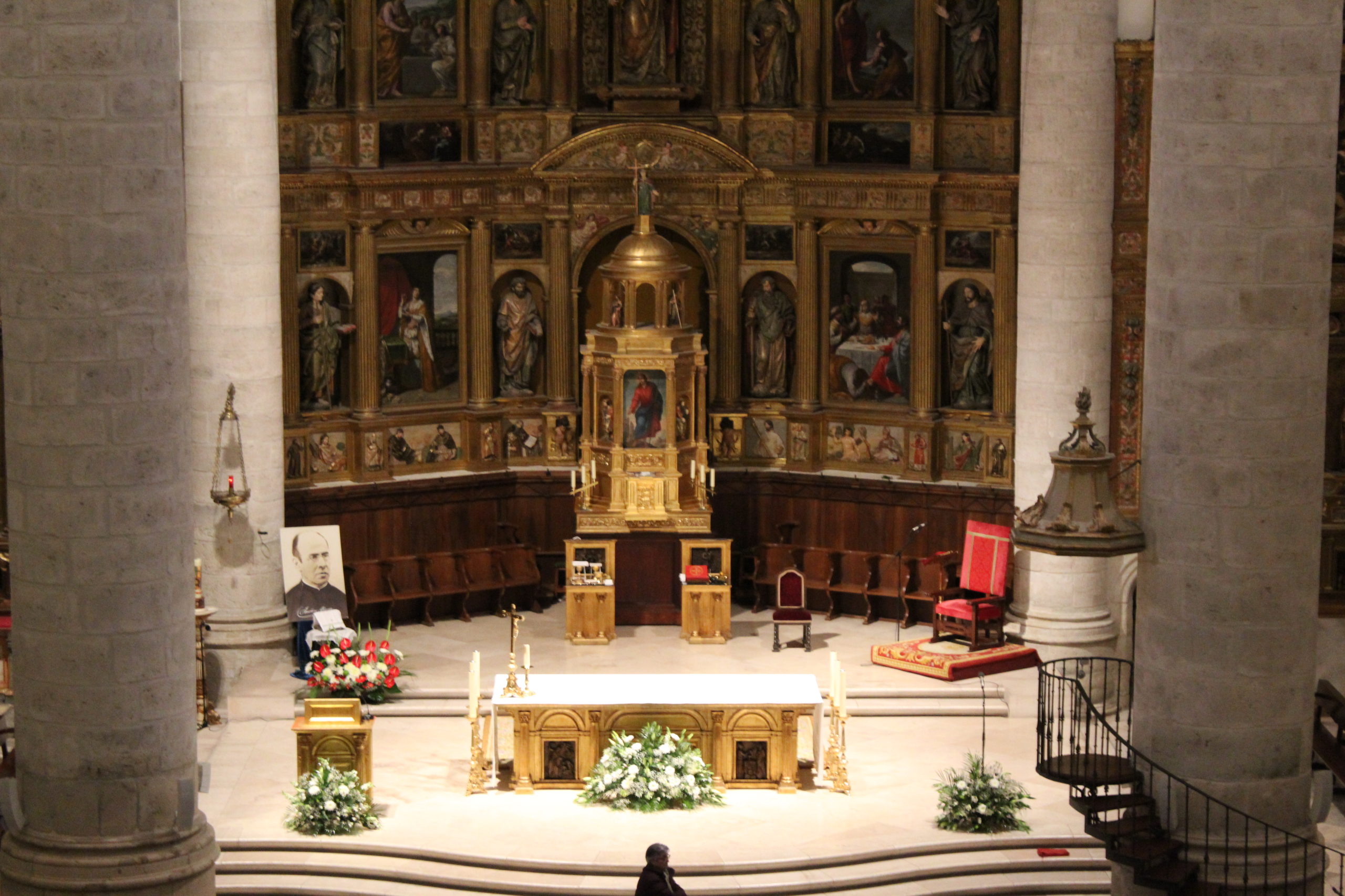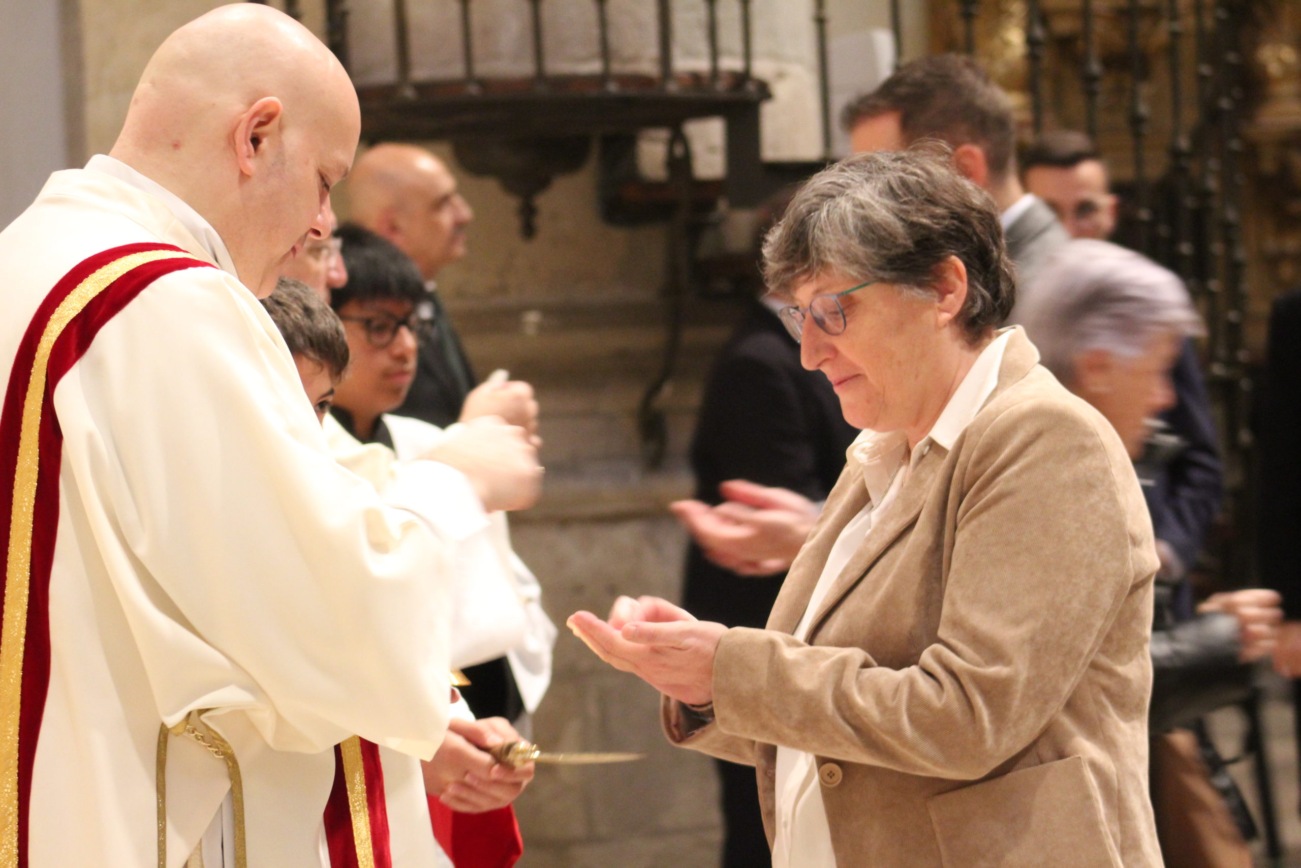 A pesar del clima adverso, la celebración estuvo marcada por una gran participación y alegría. Los actos oficiales comenzaron a las 10:00 h con una solemne Eucaristía en la Catedral de Santa María Magdalena de Getafe, presidida por el obispo D. Ginés García Beltrán. En la ceremonia estuvieron presentes el P. General Pedro Aguado, Escolapios de las comunidades de Getafe y Madrid, sacerdotes diocesanos, autoridades civiles, representantes de la Iglesia local y de la Hermandad de Nuestra Señora de los Ángeles, diversas congregaciones calasancias, el Equipo del Gobierno General del Instituto, las Delegadas de los tres Sectores del Instituto, religiosas y laicos calasancios, alumnos, profesores y familias. El coro del Colegio Divina Pastora acompañó la celebración con interpretaciones musicales llenas de sensibilidad y emoción.