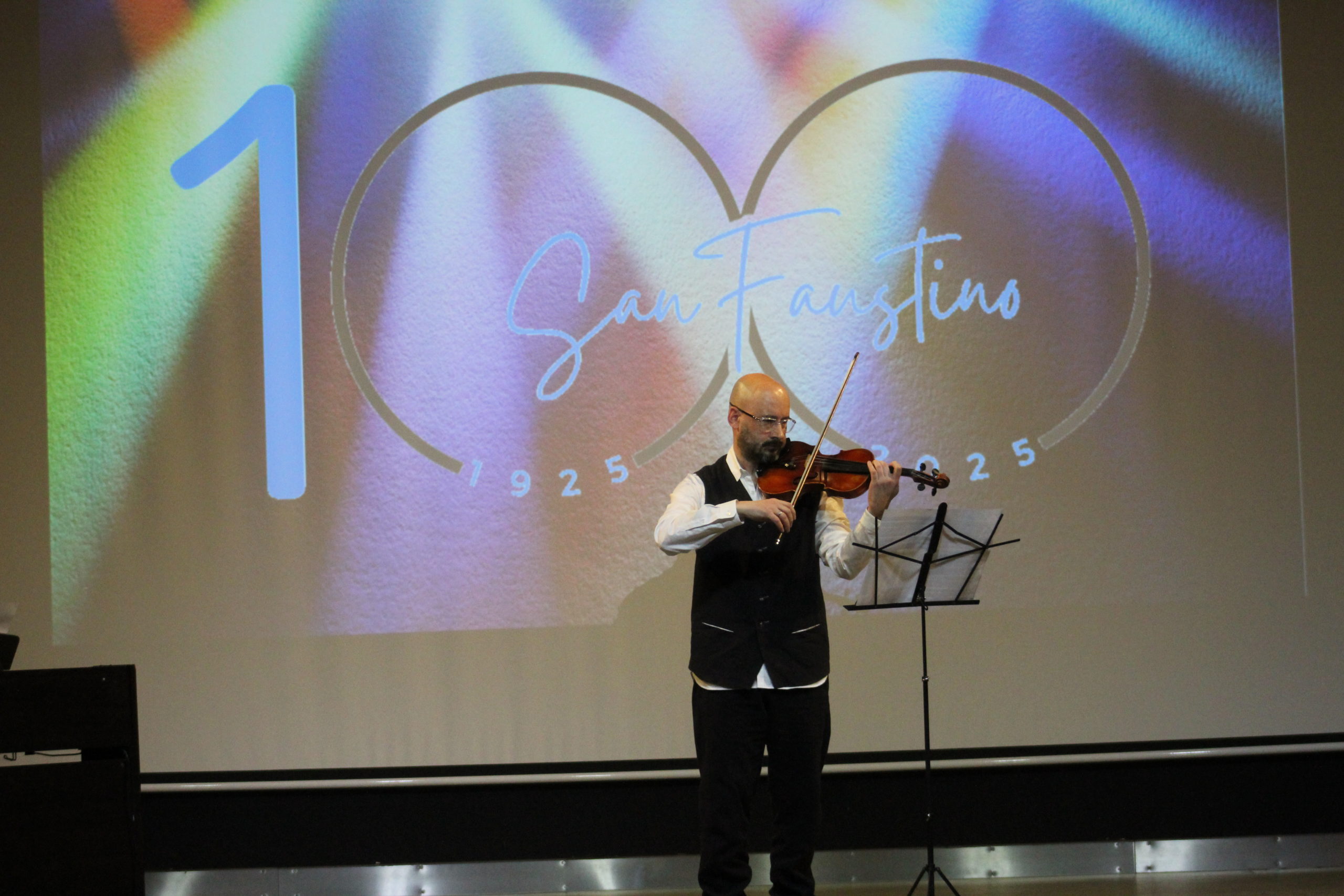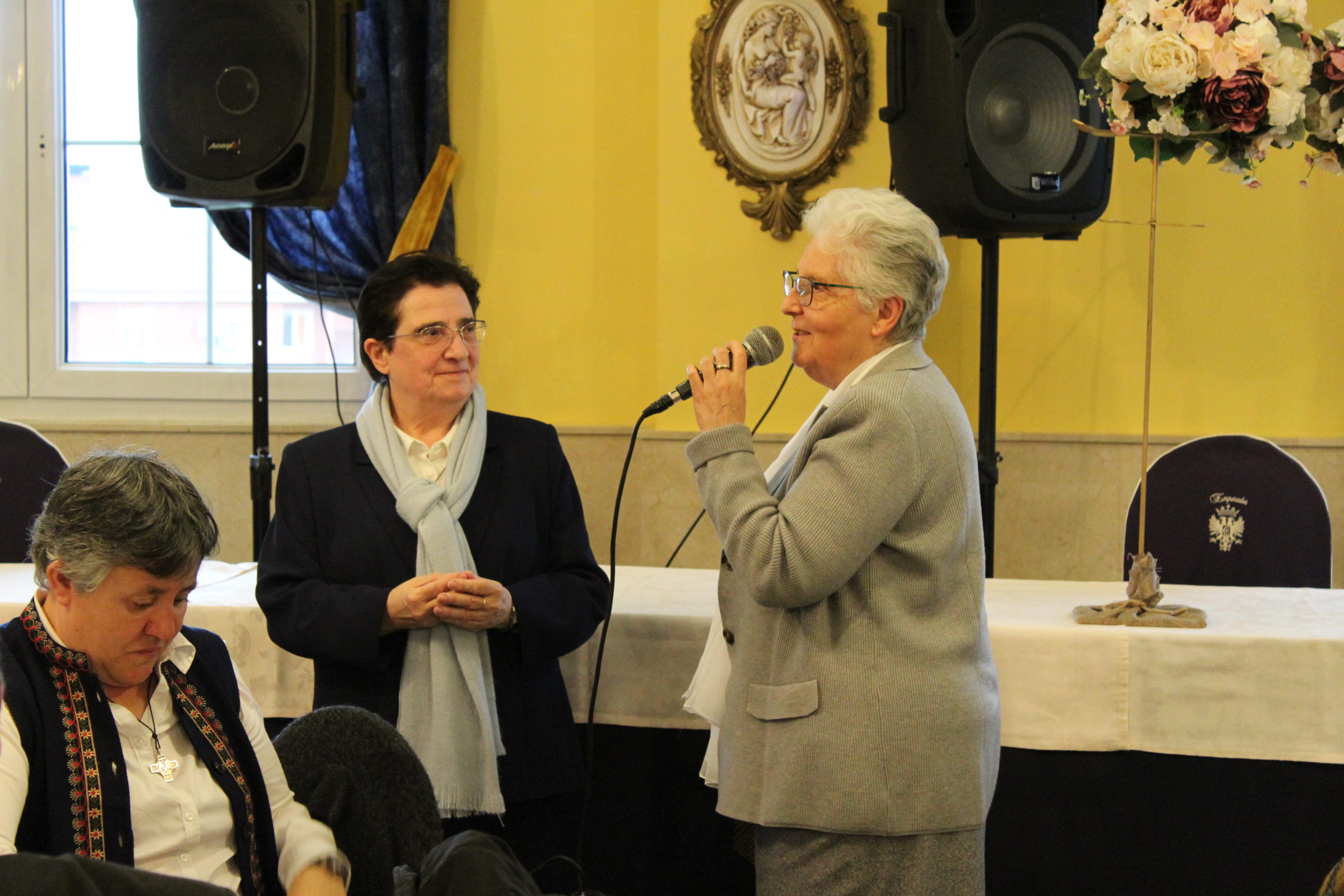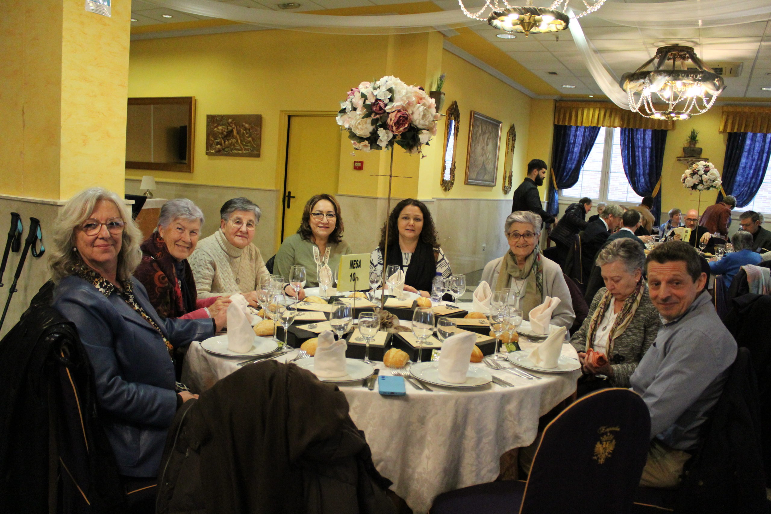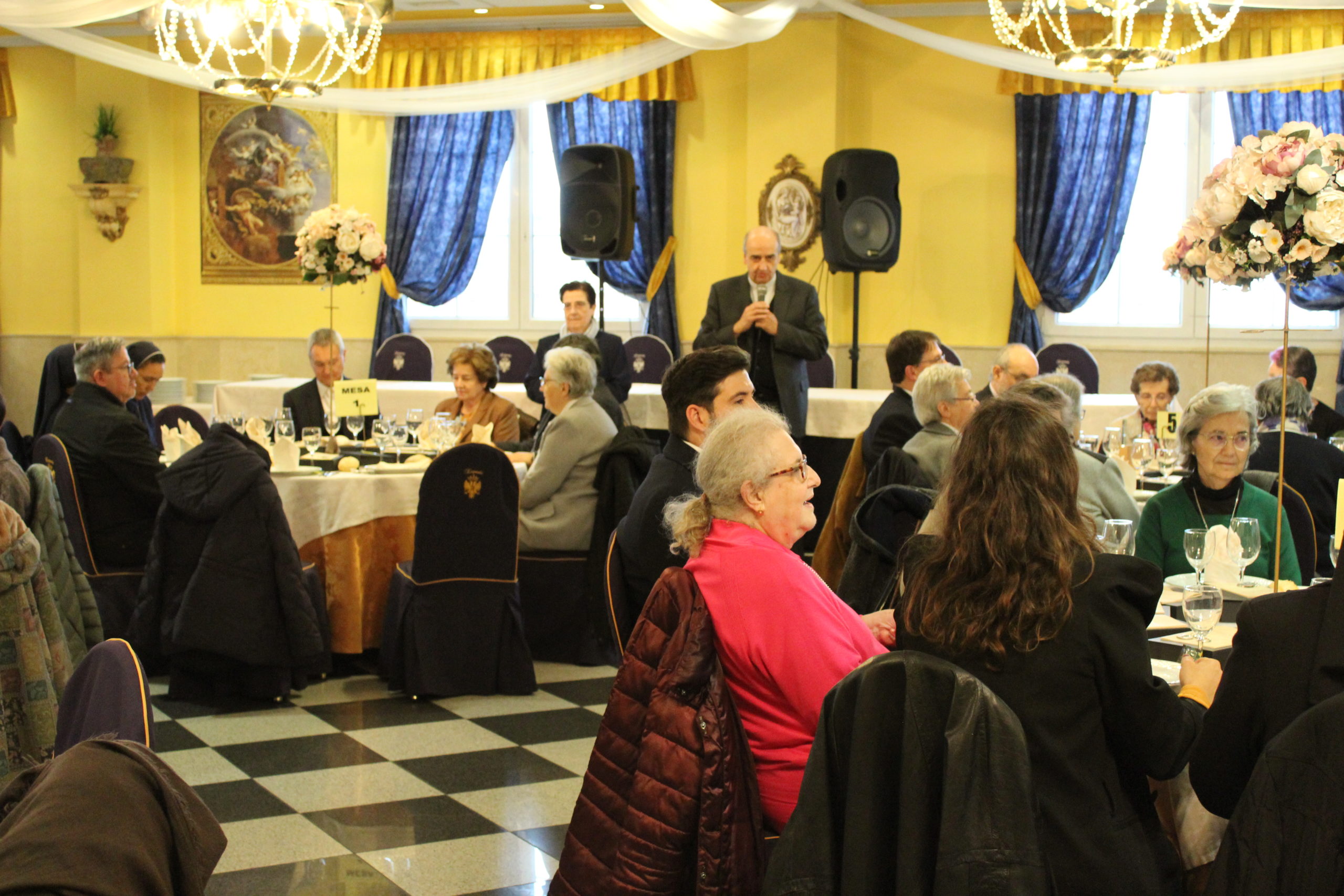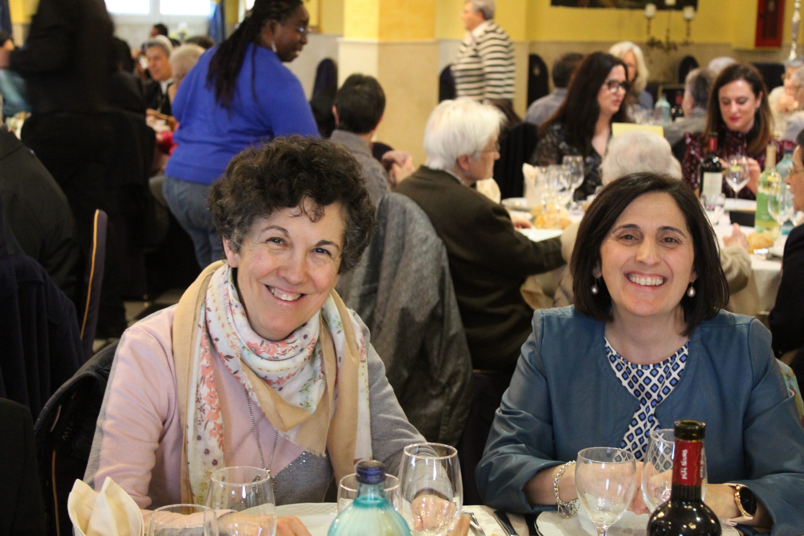 Tras la Eucaristía, los asistentes compartieron un ágape en un ambiente fraterno, marcado por abrazos, sonrisas y encuentros. A las 12:30 h, el Salón de Actos del Colegio de los Padres Escolapios acogió un acto cultural que enriqueció la conmemoración. La M. general Mª José Sotelo en su saludo inicial recordaba que esta celebración pascual nos llena de gozo y esperanza pues San Faustino fue un hombre del pueblo y para el pueblo que nos transmite “una forma de entender la vida, un modo de relacionarnos y nos ofrece una madre que es Pastora, nos acompaña y nos cuida”. A continuación, la alcaldesa de Getafe, Dña. Sara Hernández, saludaba también a los participantes.