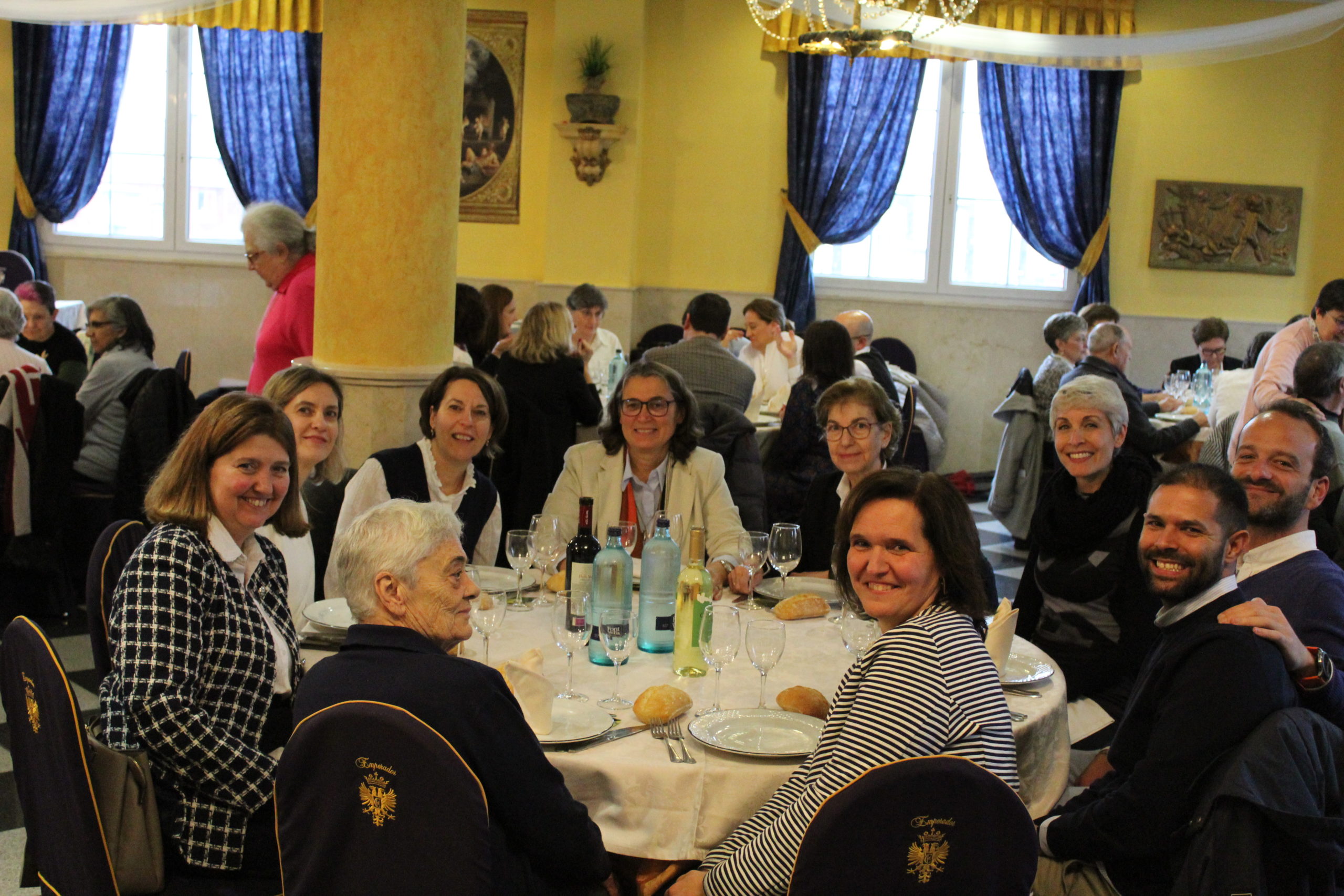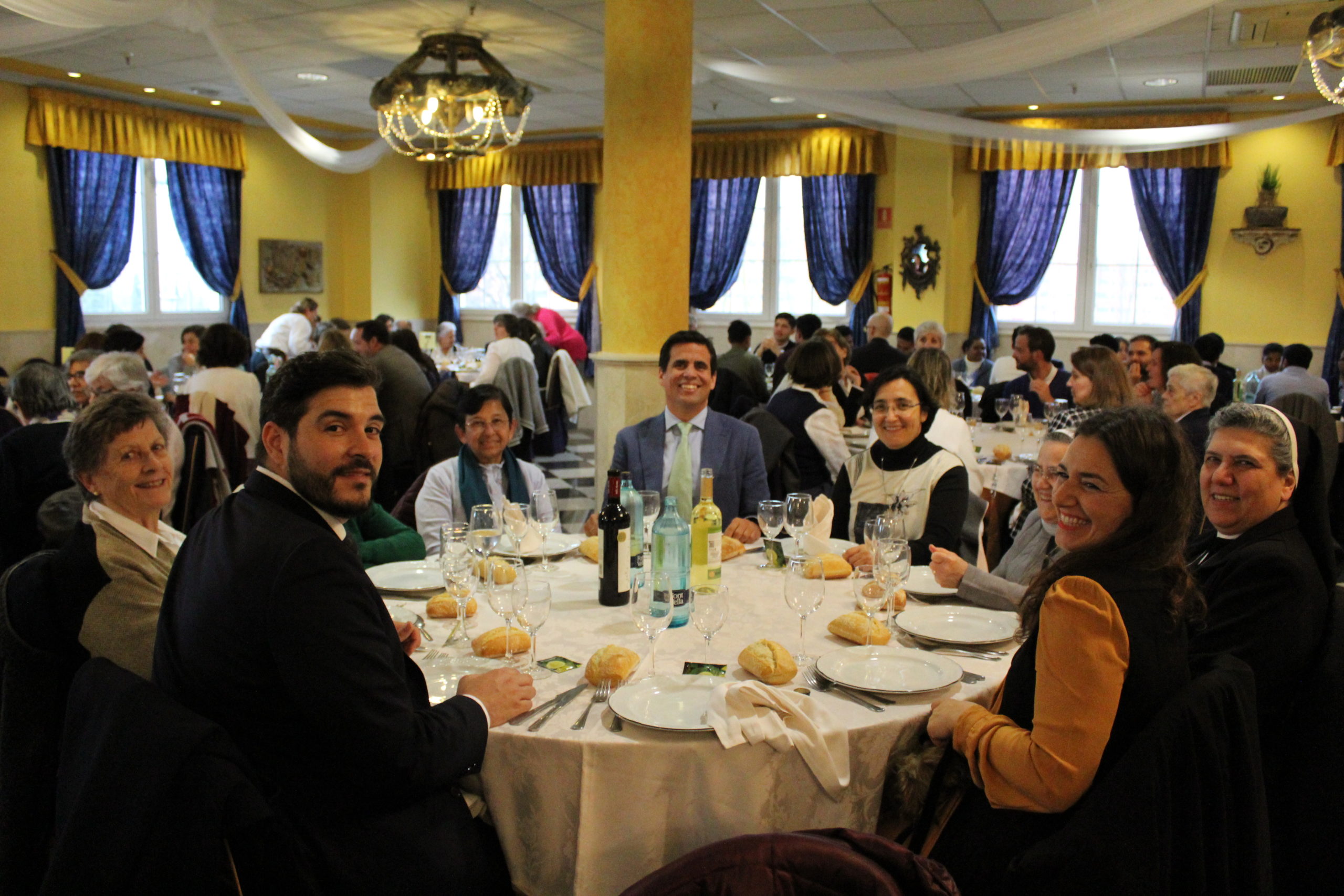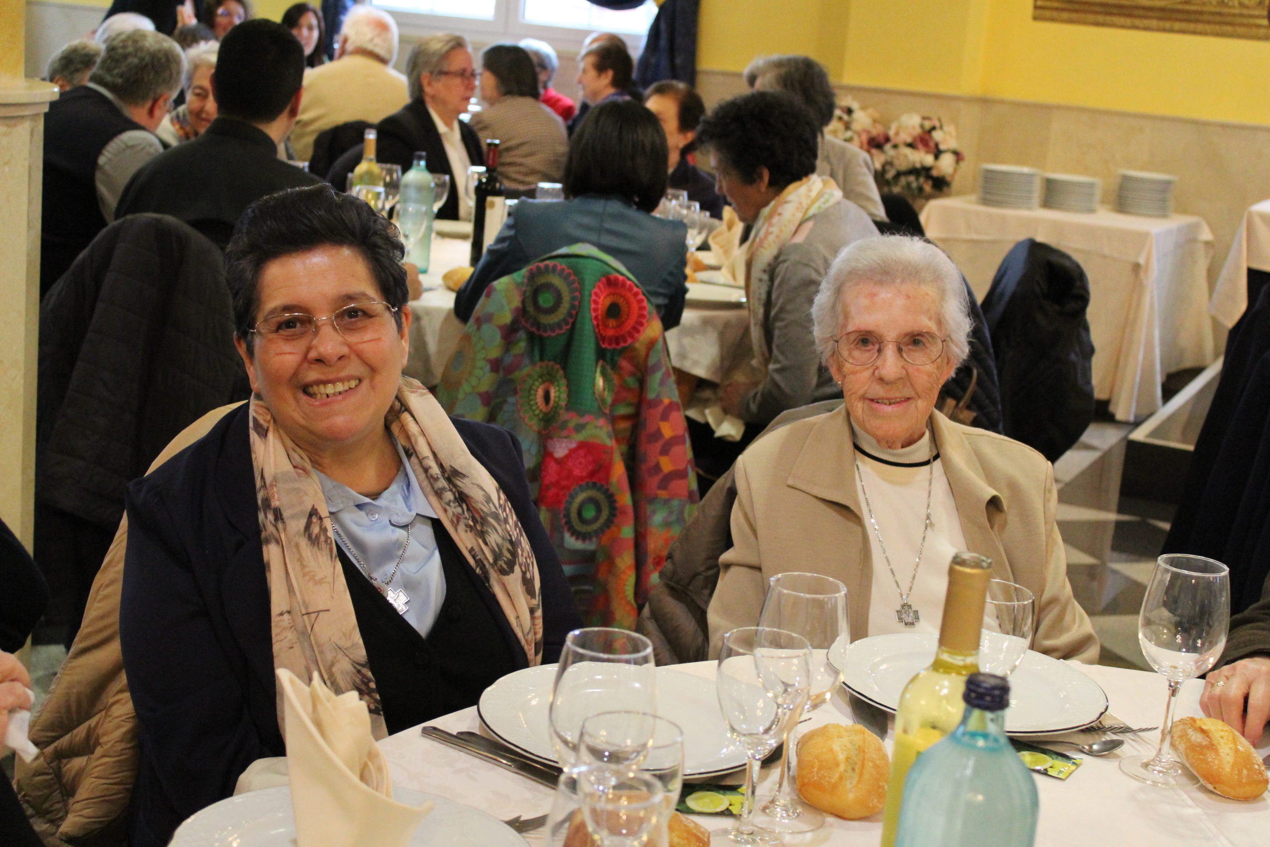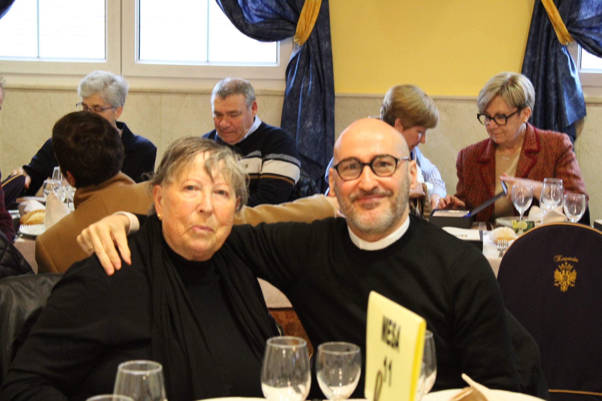 Tras la Eucaristía, los asistentes compartieron un ágape en un ambiente fraterno, marcado por abrazos, sonrisas y encuentros. A las 12:30 h, el Salón de Actos del Colegio de los Padres Escolapios acogió un acto cultural que enriqueció la conmemoración. La M. general Mª José Sotelo en su saludo inicial recordaba que esta celebración pascual nos llena de gozo y esperanza pues San Faustino fue un hombre del pueblo y para el pueblo que nos transmite “una forma de entender la vida, un modo de relacionarnos y nos ofrece una madre que es Pastora, nos acompaña y nos cuida”. A continuación, la alcaldesa de Getafe, Dña. Sara Hernández, saludaba también a los participantes.