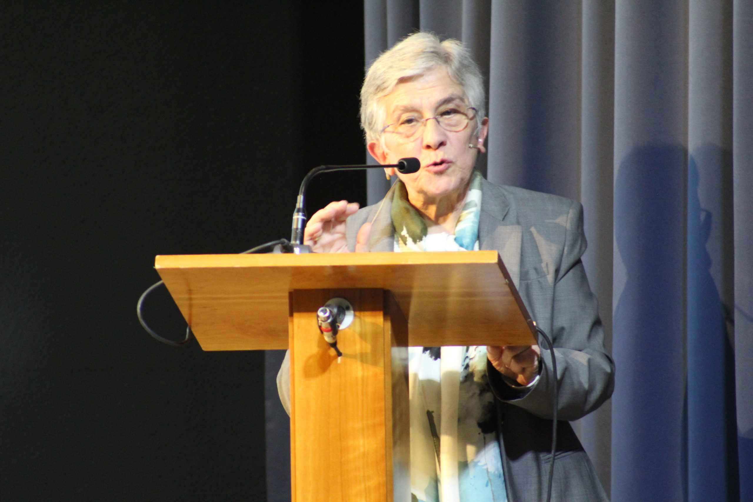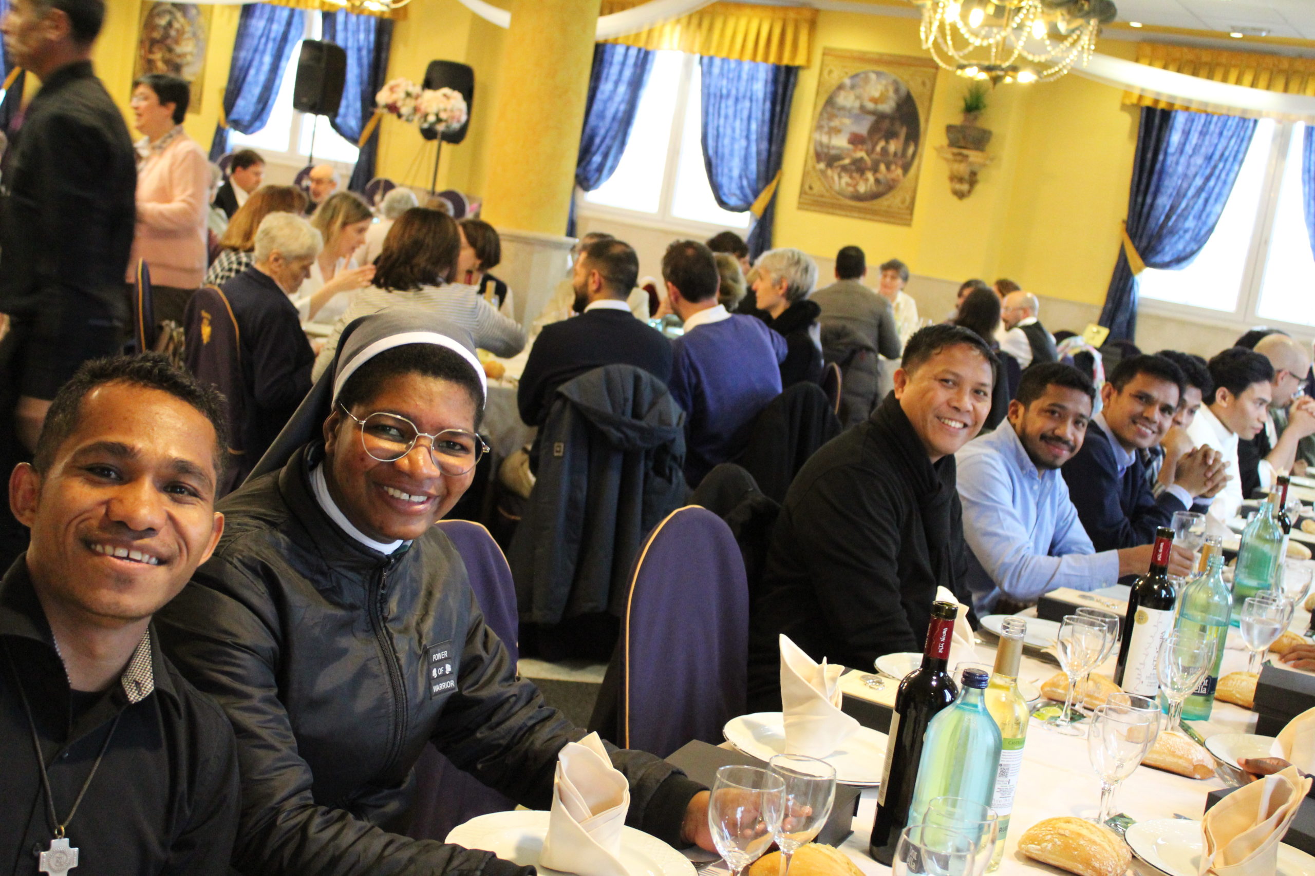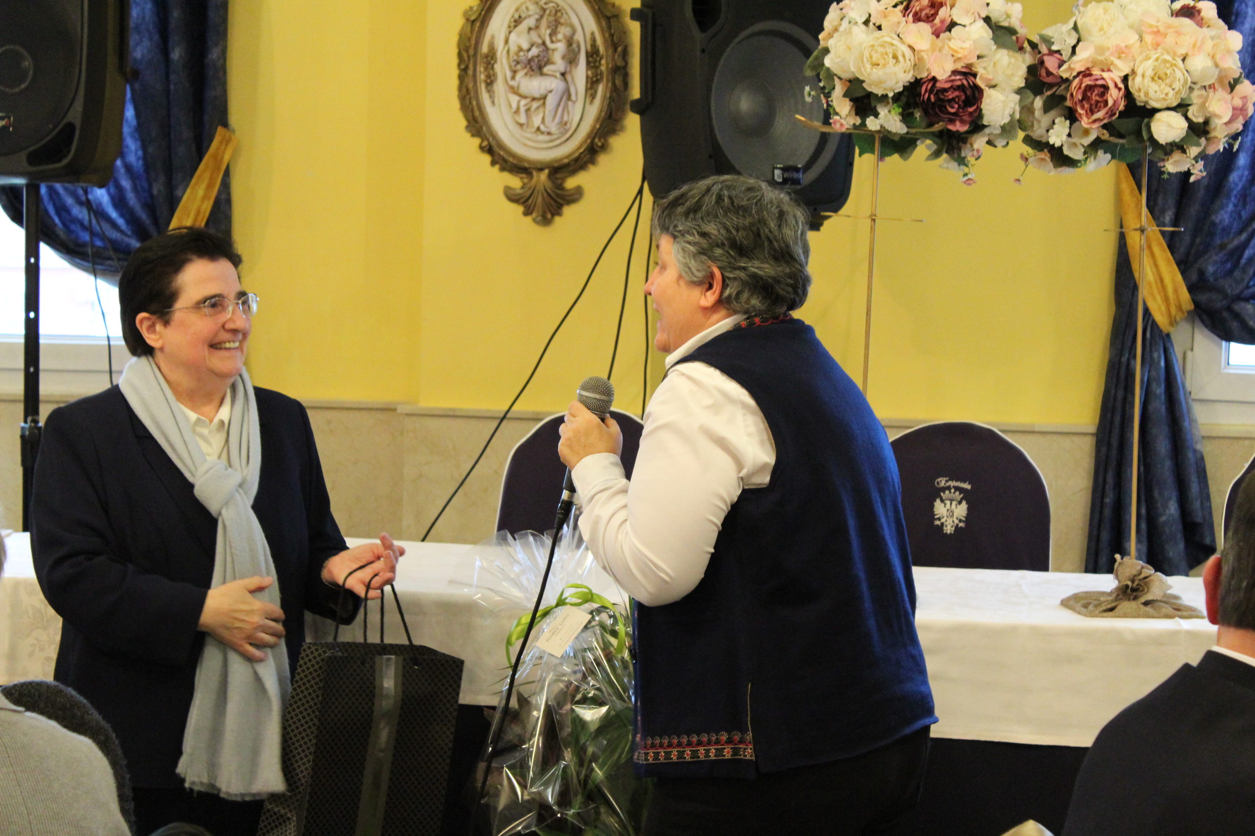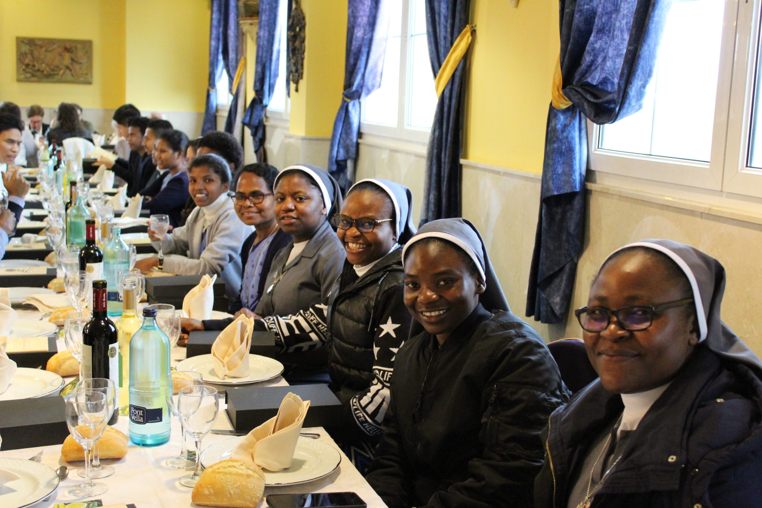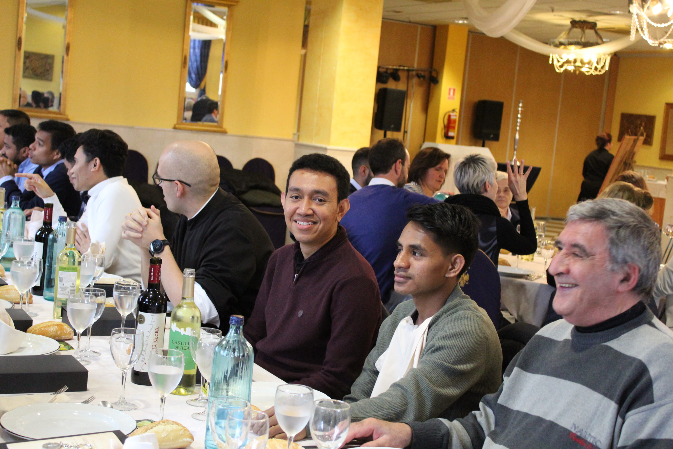 Tras la Eucaristía, los asistentes compartieron un ágape en un ambiente fraterno, marcado por abrazos, sonrisas y encuentros. A las 12:30 h, el Salón de Actos del Colegio de los Padres Escolapios acogió un acto cultural que enriqueció la conmemoración. La M. general Mª José Sotelo en su saludo inicial recordaba que esta celebración pascual nos llena de gozo y esperanza pues San Faustino fue un hombre del pueblo y para el pueblo que nos transmite “una forma de entender la vida, un modo de relacionarnos y nos ofrece una madre que es Pastora, nos acompaña y nos cuida”. A continuación, la alcaldesa de Getafe, Dña. Sara Hernández, saludaba también a los participantes.