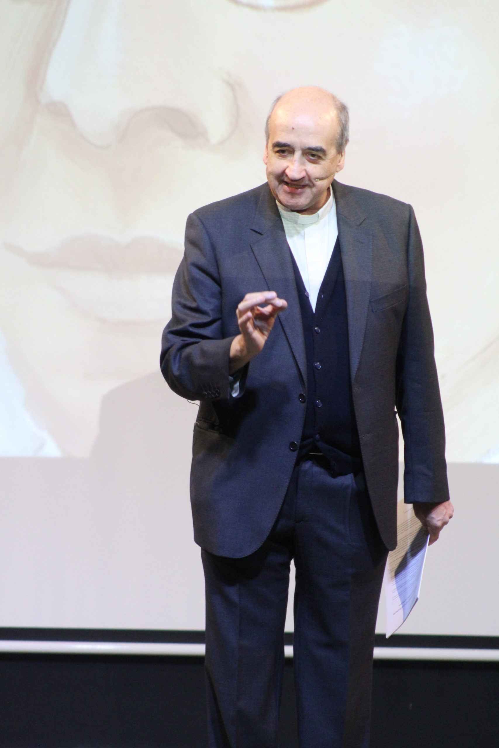 El P. Pedro Aguado, Superior General de la Orden de las Escuelas Pías, presentó la ponencia «San Faustino de la Encarnación: Un escolapio que habla a los educadores», resaltando la centralidad del alumno, la importancia de la escucha y la necesidad de educar para la transformación.