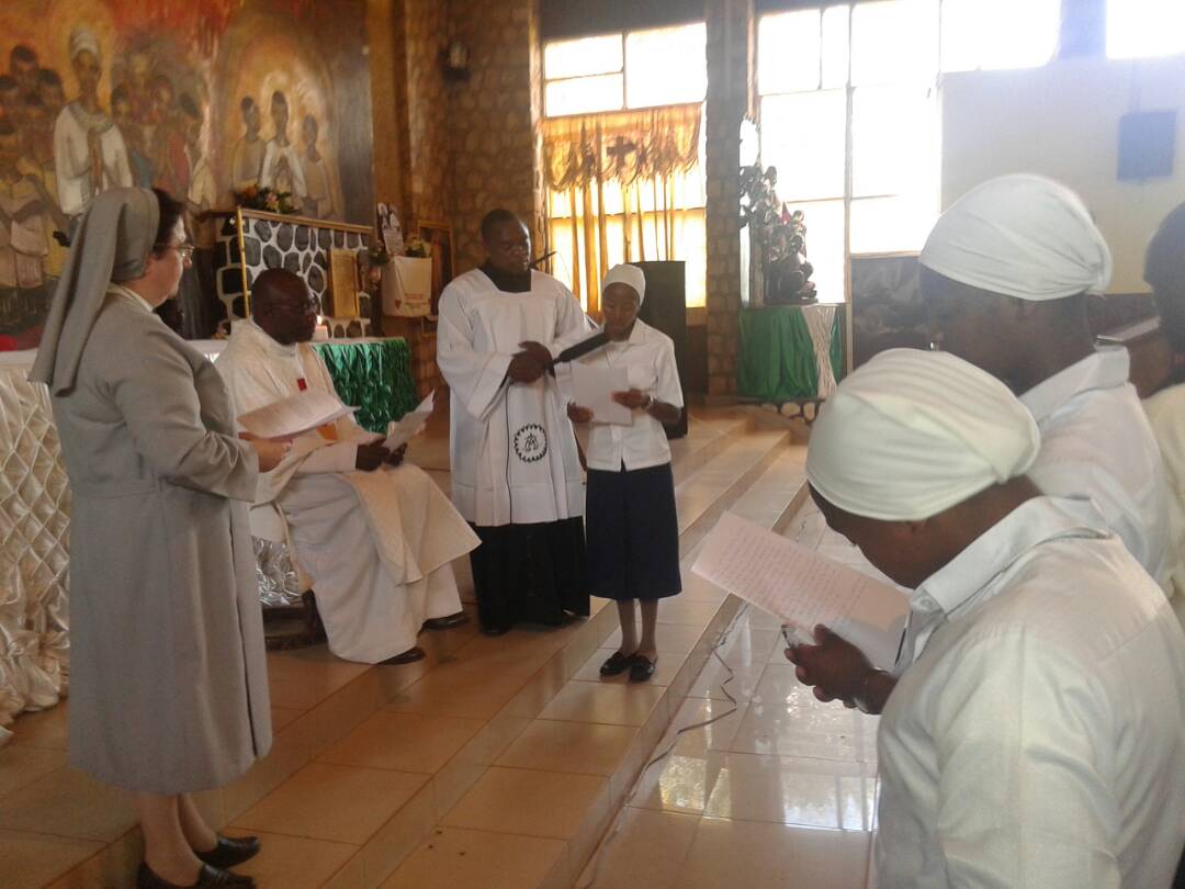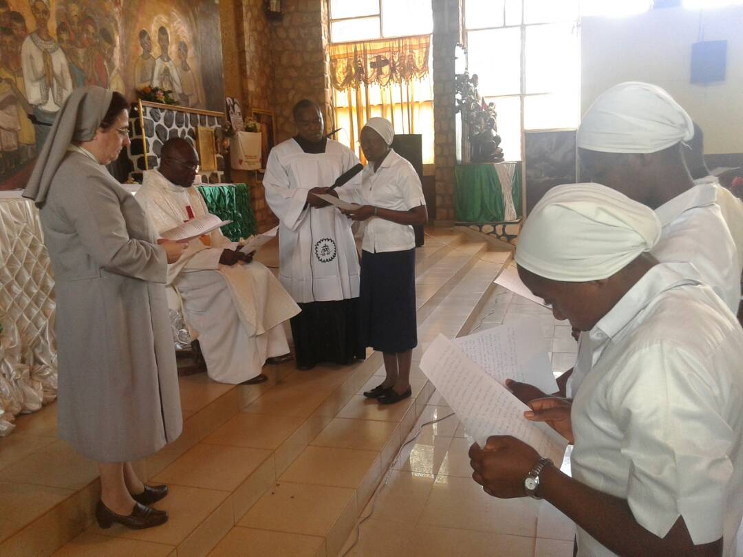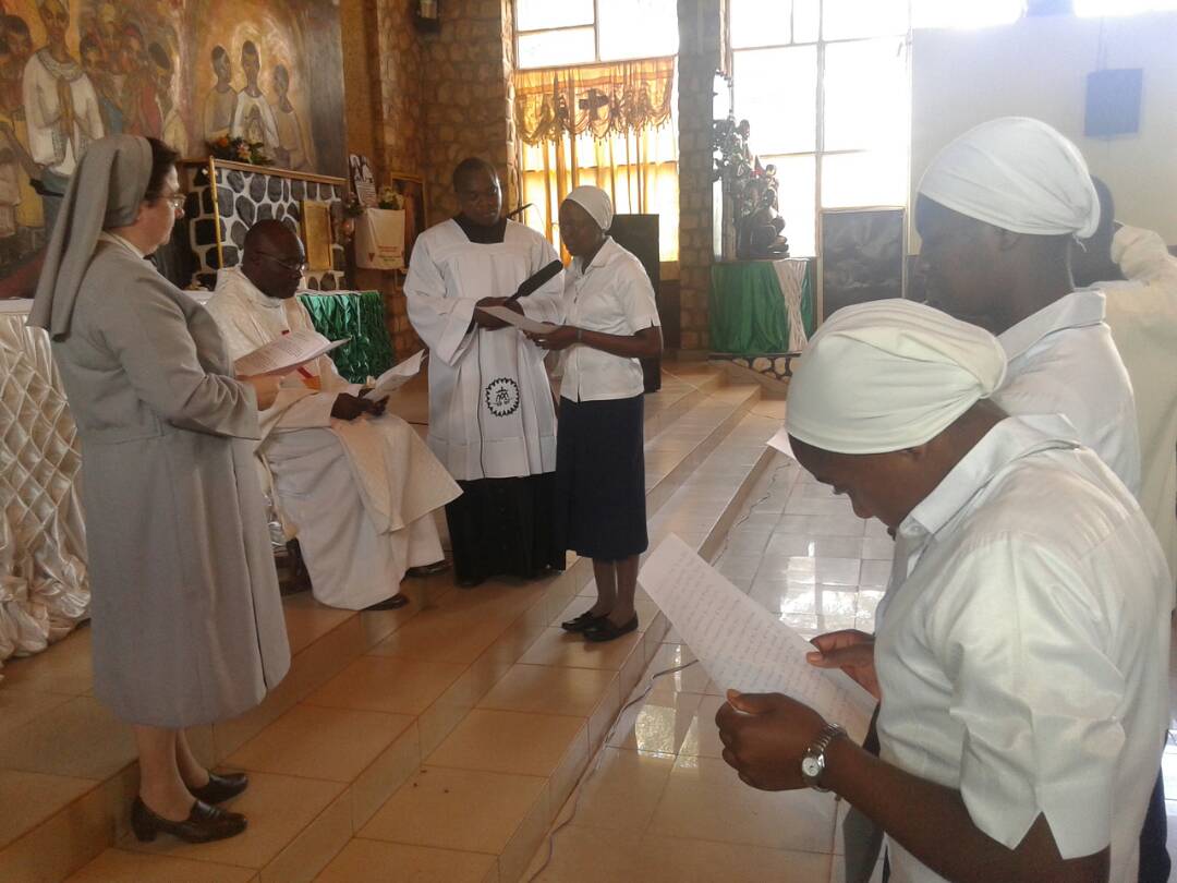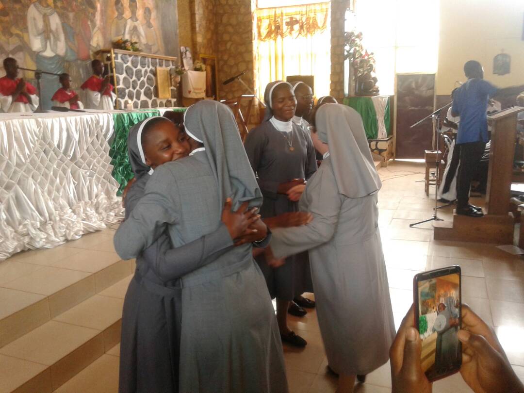 Hoy es un día especial. Nuestras hermanas Sr. Funbui Robine Ankungha, Sr. Ngum Clarisse Ngu, Sr. Dinayen Lovette Mengla, Sr. Berinyuy Cynthia Kika y Sr. Nfon Germaine Biye han realizado su Primera Profesión en Futrú (Camerún).