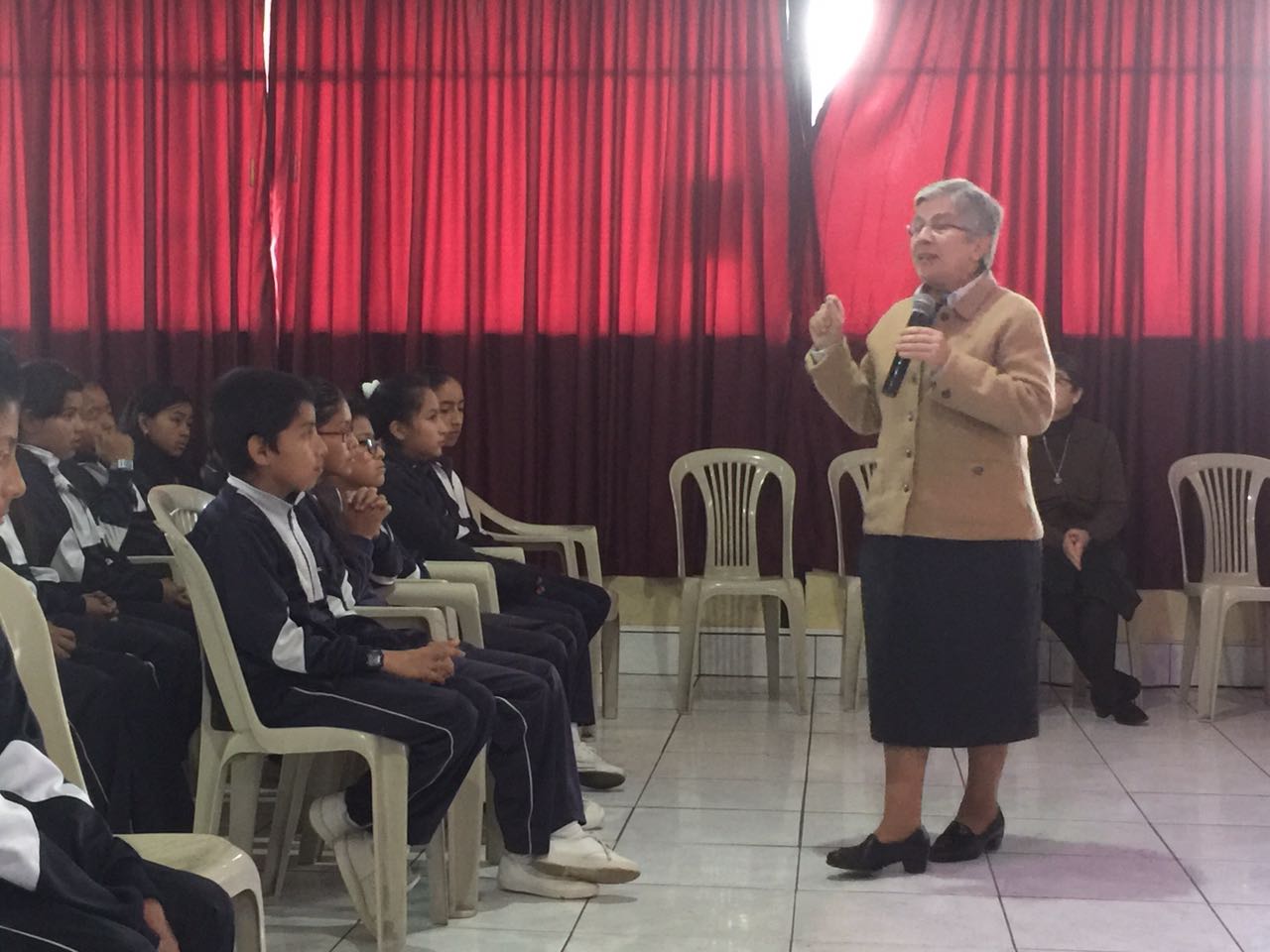Nuestra Superiora General, y M. María de la Villa, se encuentran visitando nuestra Comunidad de Quito. Allí han visitado el colegio Carlos Ponce Martínez, de Fe y Alegría, han compartido con los niños la Eucaristía y los han saludado. También han visitado nuestro Colegio M. Victoria Valverde en donde han tenido un encuentro con el personal docente y administrativo.