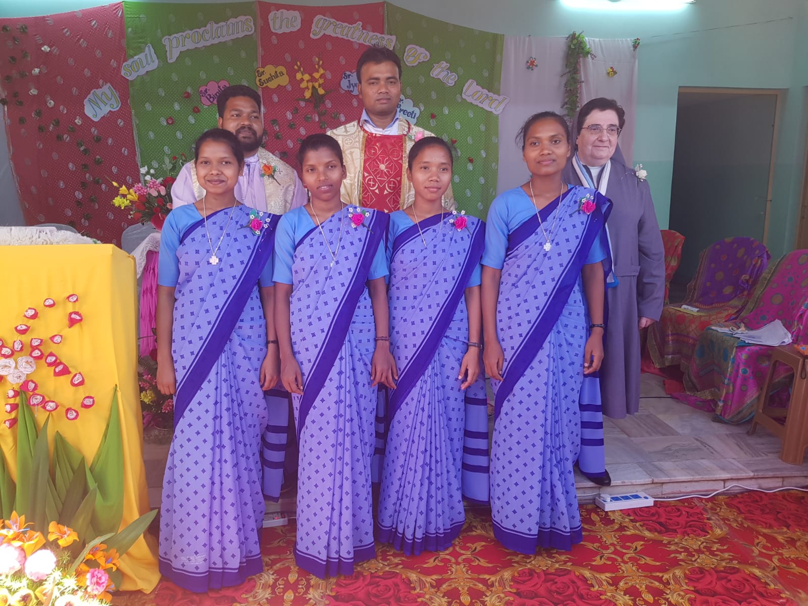 Sobrecogidas por la grandeza de Dios. Agradecidas por Su amor sin límites. Con el deseo de responder a tanto don recibido con lo mejor de ellas, nuestras hermanas Suchita Barla, Binita Bhengra, Priti Dungdung y Jyoti Hemram han realizado su primera profesión en Ranchi, ante M. Mª José Sotelo, superiora general, que ha recibido sus votos en nombre de la Iglesia.