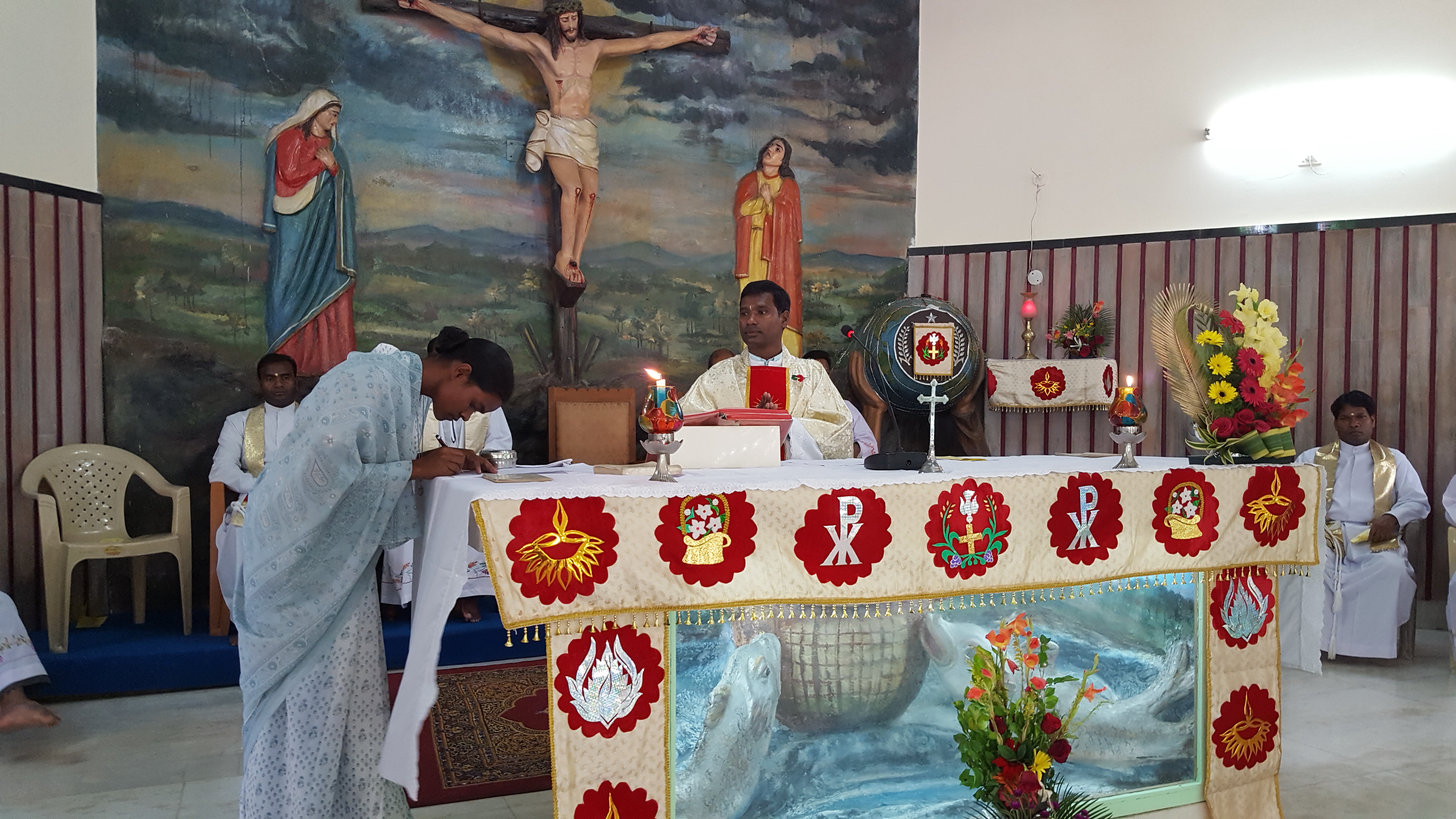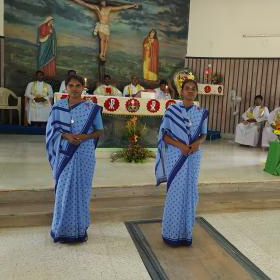 El día 12 de septiembre de 2016, en la Parroquia St. Francis Church de Ranchi, hicieron sus primeros votos en el Instituto nuestras hermanas Ashrita Champi y Soni Dodraay. La celebración eucarística fue presida por el P. Francis Kerketta, Schp. y concelebrada junto a otros 12 sacerdotes de distintas congregaciones: escolapios, claretianos, franciscanos, jesuitas y misioneros de la India. La profesión fue recibida, en nombre del Instituto, por M. Mª de la Villa de la Torre Olid, Consejera General. Ashrita y Soni fueron acompañadas en este día también por M. Mª Angustias de la Plata Rodríguez, Delegada del Sector de Espaňa – África – India, M. Inés Martincic, superiora de la comunidad, M. Mª Carmen Sánchez, maestra de novicias, M. Janet Paniagua, M. Teresia Tamunang, M. Punan Dung Dung y M. Rita Kerketta, además de las novicias, postulantes y demás candidatas que se encuentran en formación. También participaron en la celebración las familias de las hermanas y miembros de otros institutos religiosos: Religiosas de Jesucristo Eterno Sacerdote Ursulinas, Marianistas, Trinitarias de la Sda. Familia y Oblatas. La Eucaristía estuvo animada con danzas, el colorido de los saris y un numeroso coro formado por seminaristas de la diócesis, candidatos de los PP. Escolapios y las candidatas calasancias. Al finalizar, todos se juntaron en nuestra casa. En esta época de lluvia el Seňor nos regaló un día expléndido y, en el jardín, que estaba bellamente decorado al estilo del país, las jóvenes ofrecieron un acto con diferentes cantos y danzas que terminó con el almuerzo.Los asistentes a este acontecimiento festivo pudieron gozar de un hermoso día y compartir la alegría y la acción de gracias a Dios por estas dos nuevas hermanas calasancias. Pedimos al Seňor que sean fieles a su vocación y todos las ayudemos a ser auténticas Hijas de la Divina Pastora, al servicio de los niños y jóvenes en cualquier lugar del mundo.