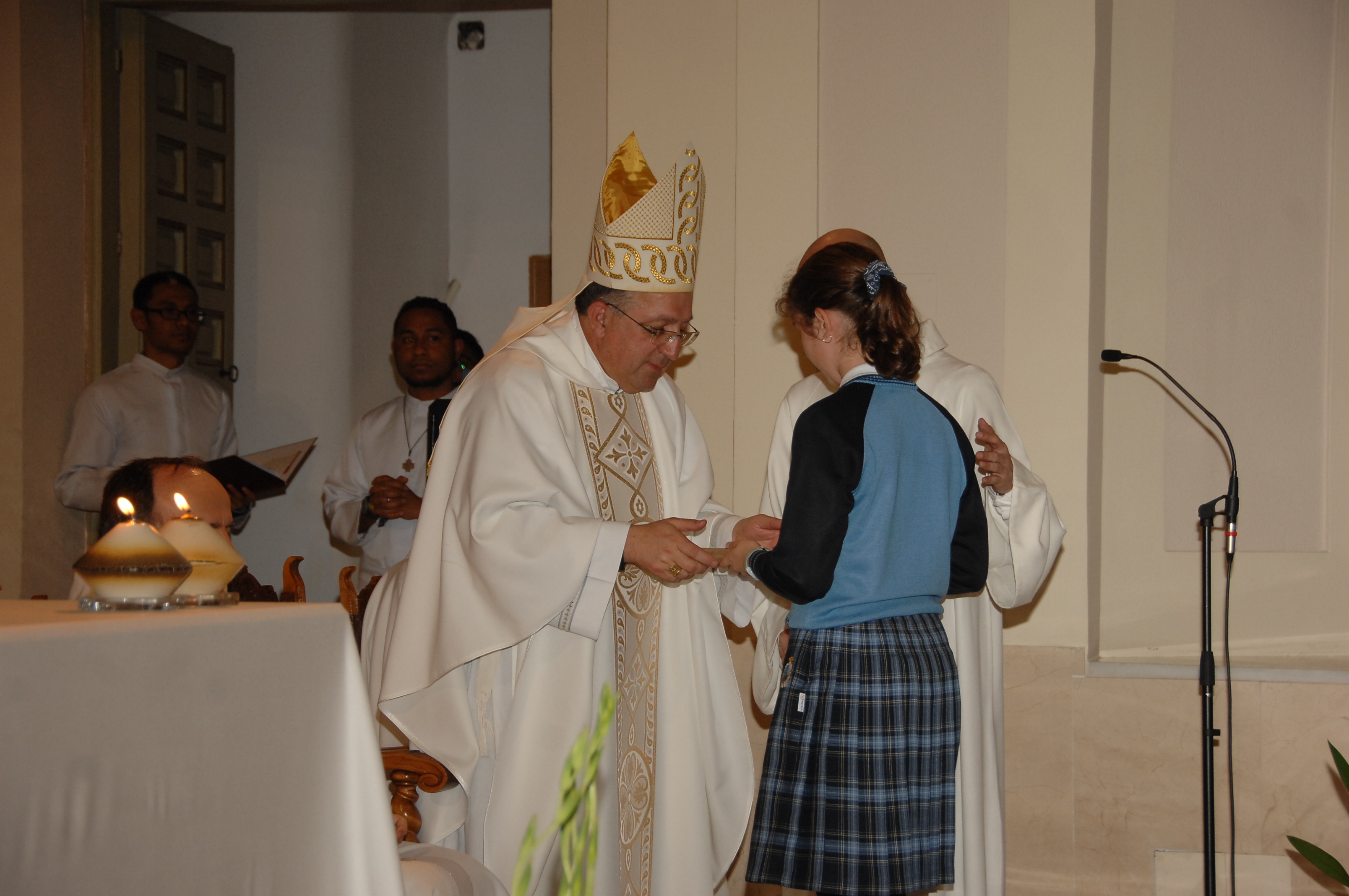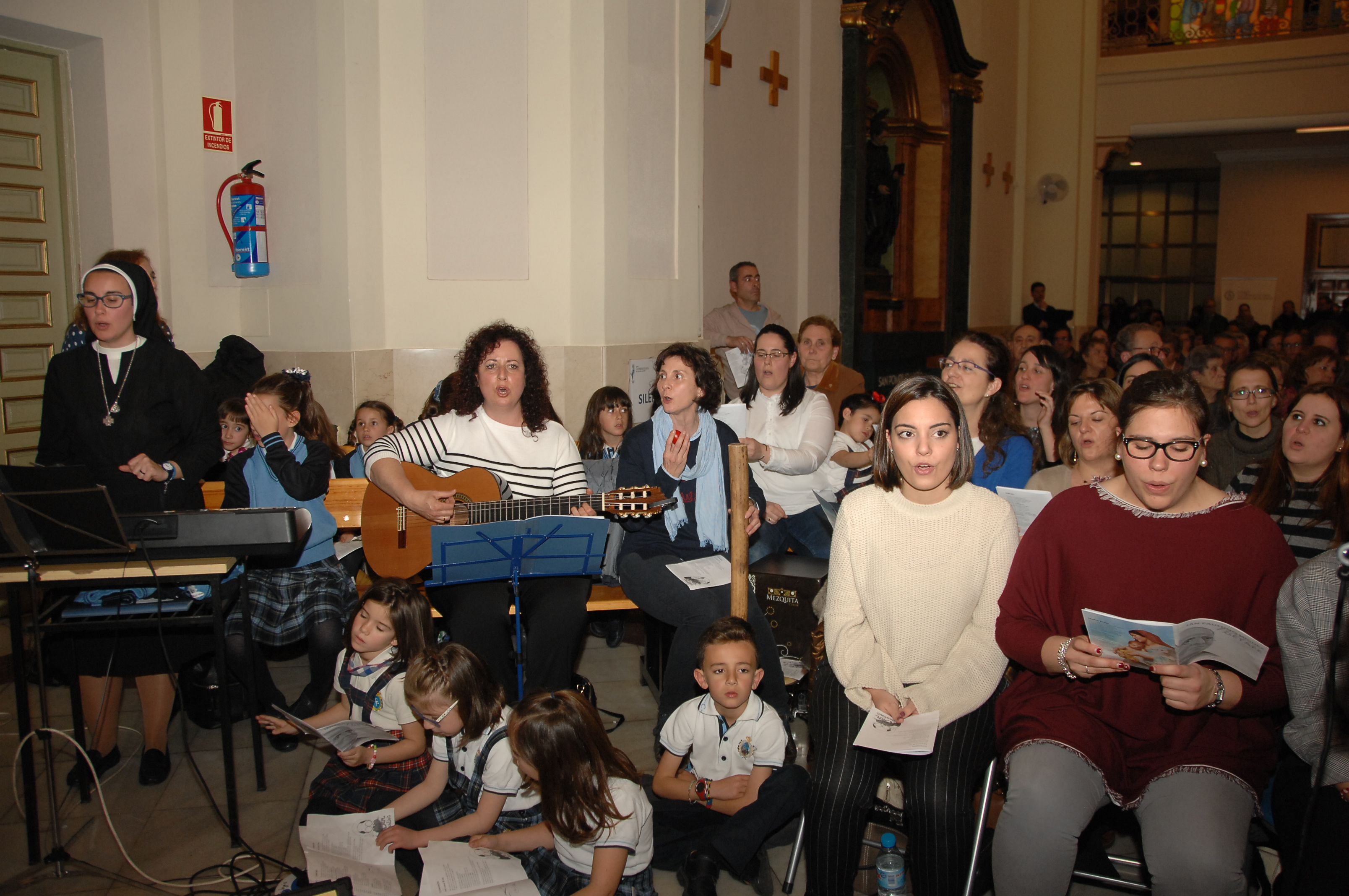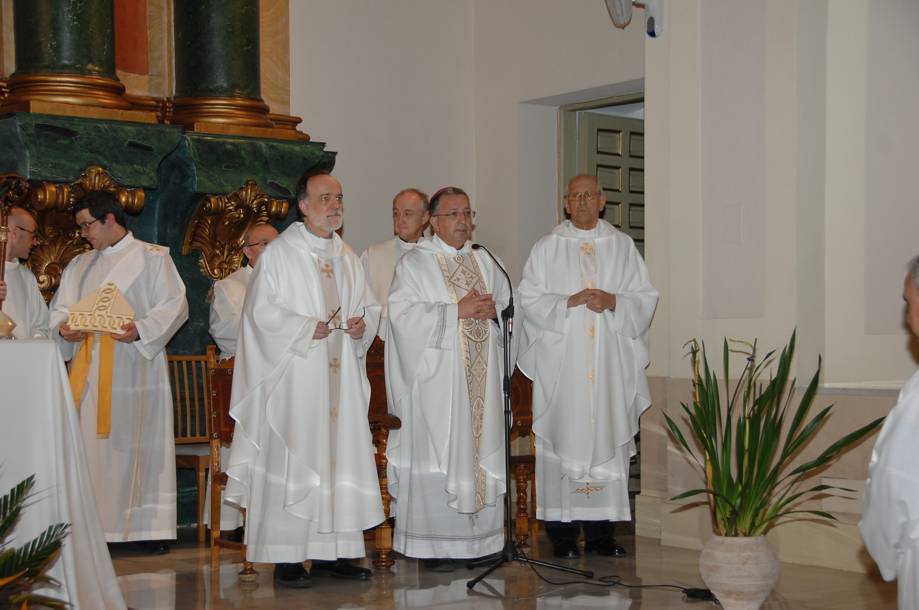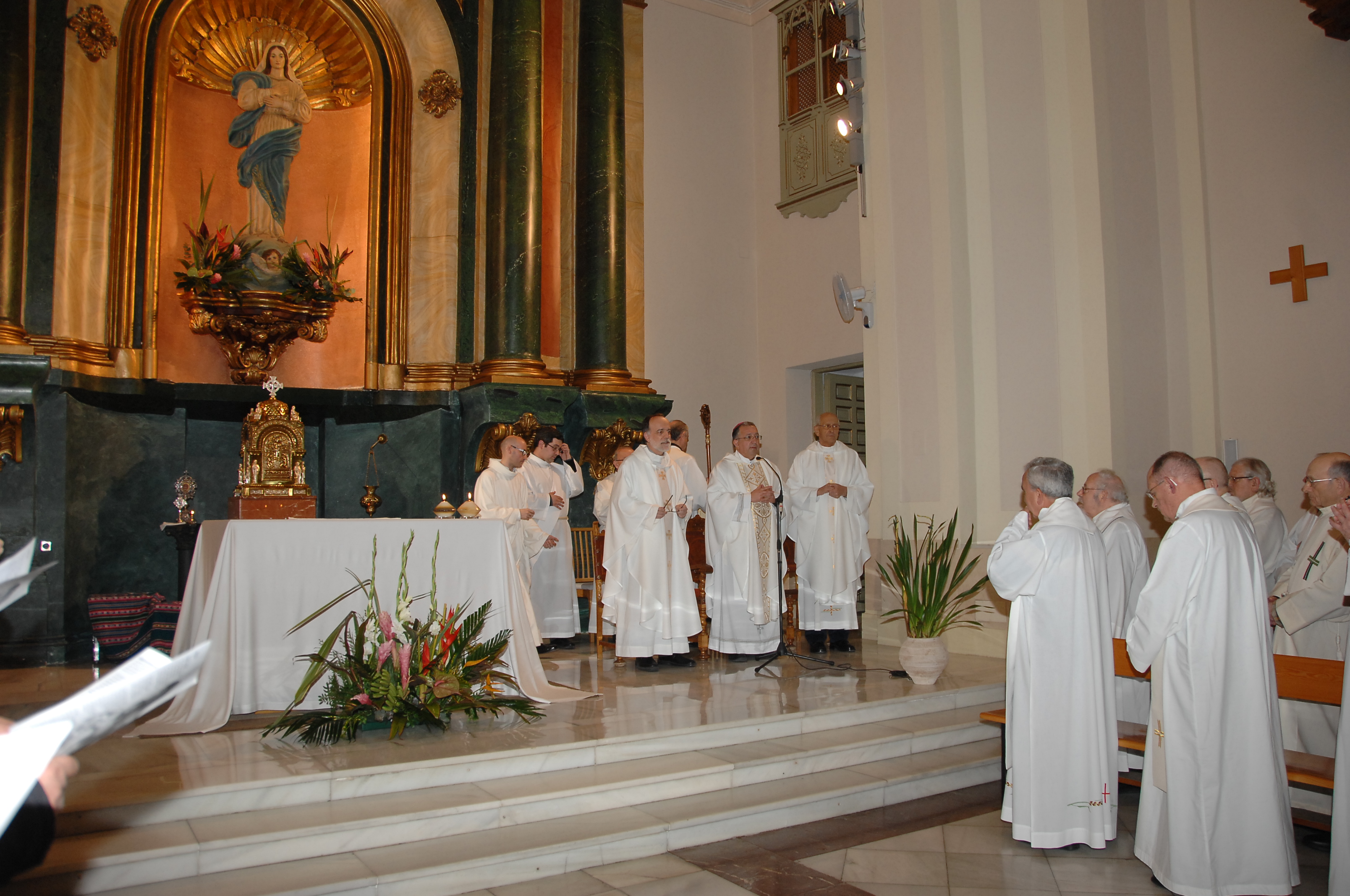 A continuación, en la iglesia La Inmaculada de los PP. Escolapios tuvo lugar la celebración de la eucaristía presidida por D. Ginés García Beltrán, obispo de Getafe, y concelebrada por el P. Daniel Hallado Sch P., escolapios de la comunidad de Getafe y numerosos sacerdotes. Participaron M. Sacramento Calderón, las religiosas de la comunidad de Getafe y miembros de las comunidades educativas de ambos colegios, así como una gran cantidad de feligreses que desearon compartir esta fiesta de la familia calasancia. En la monición de entrada, M. Sacramento presentó los 44 años que El P. Faustino vivió en Getafe como