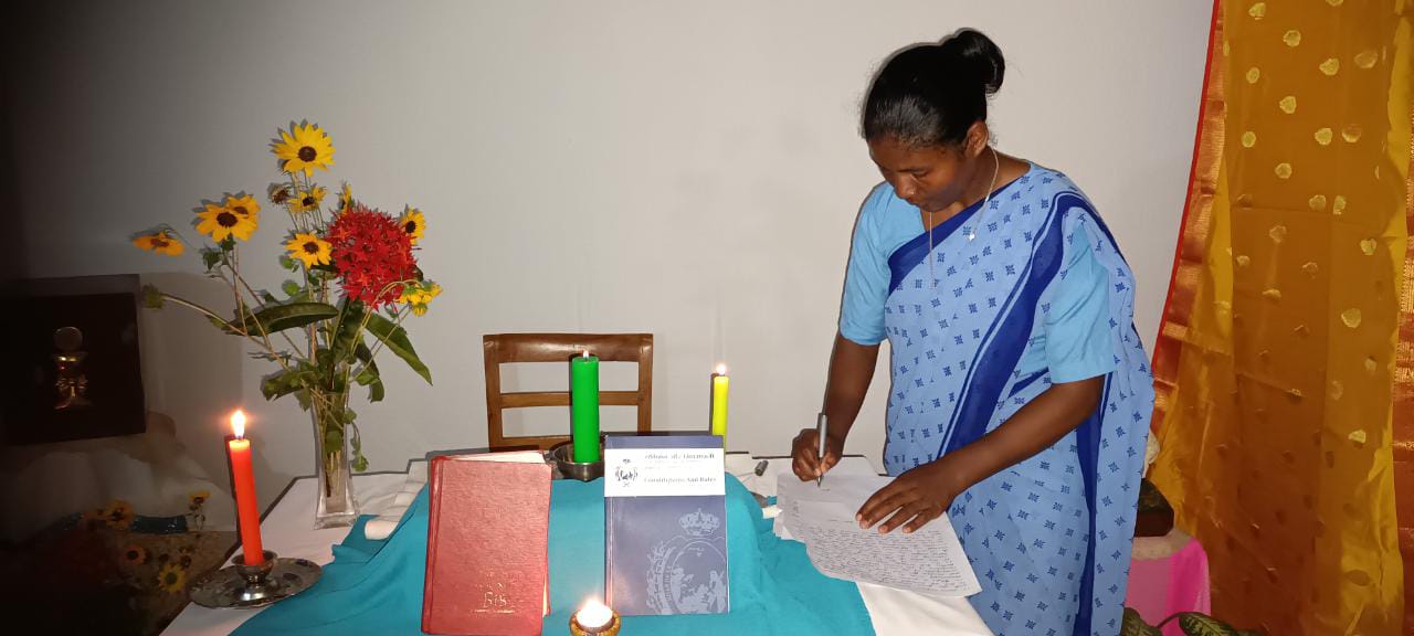 En torno a la mesa del altar, en una celebración sencilla Rajni y Brijit renovaron ante las hermanas de la comunidad su deseo de entregarse al Señor. M. Rita Kerketta recibió los votos en nombre del Instituto.