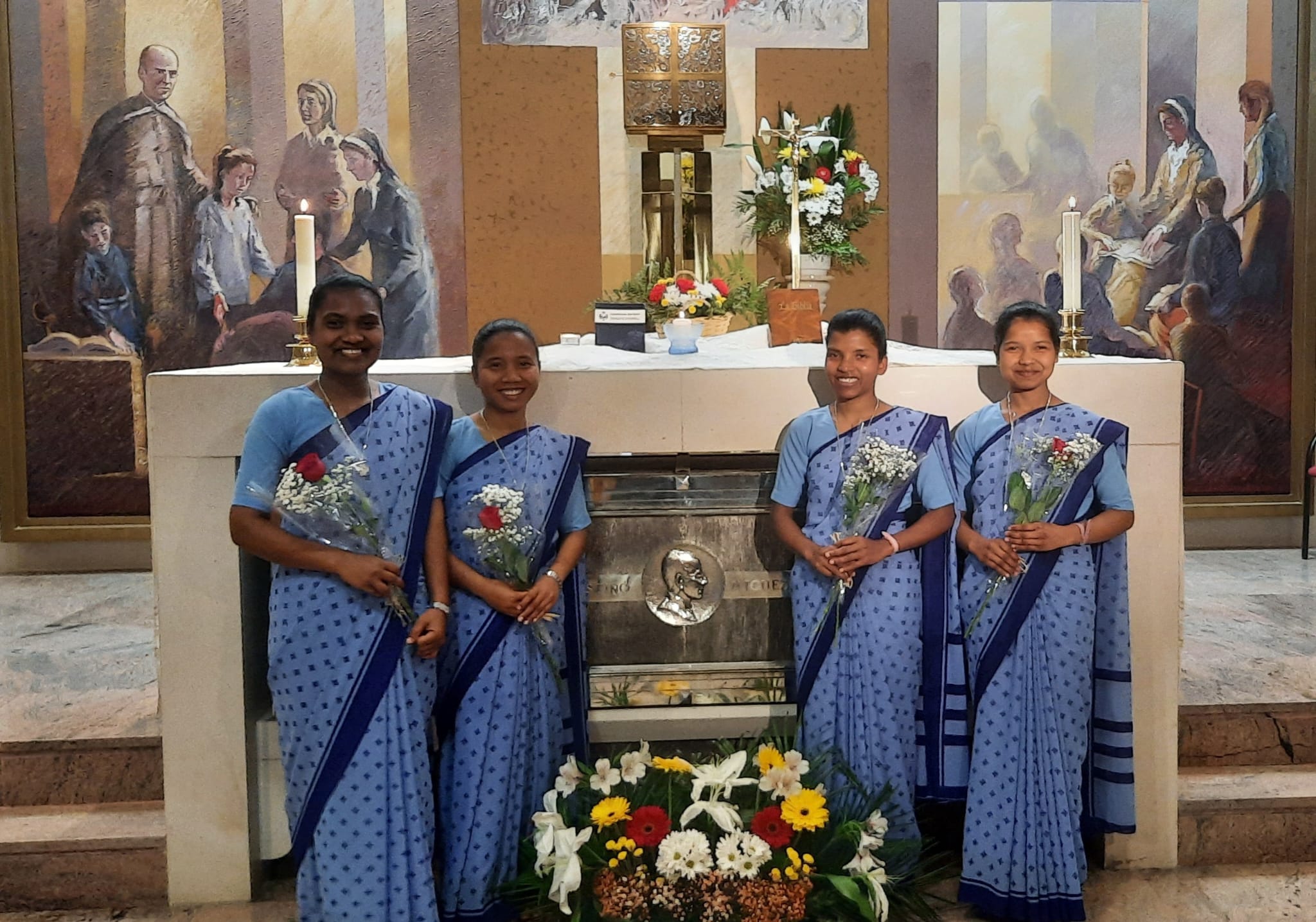 Damos gracias al Señor por el Sí de M. Suchita, M. Binita, M. Preeti y M. Jyoti, un sí sostenido en la fidelidad del Señor. Las encomendamos a María Divina Pastora para que las acompañe día a día en el seguimiento de su Hijo.