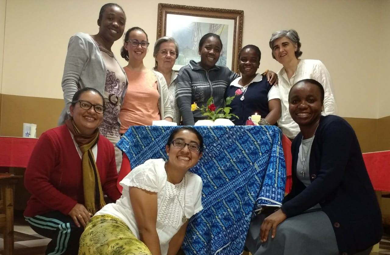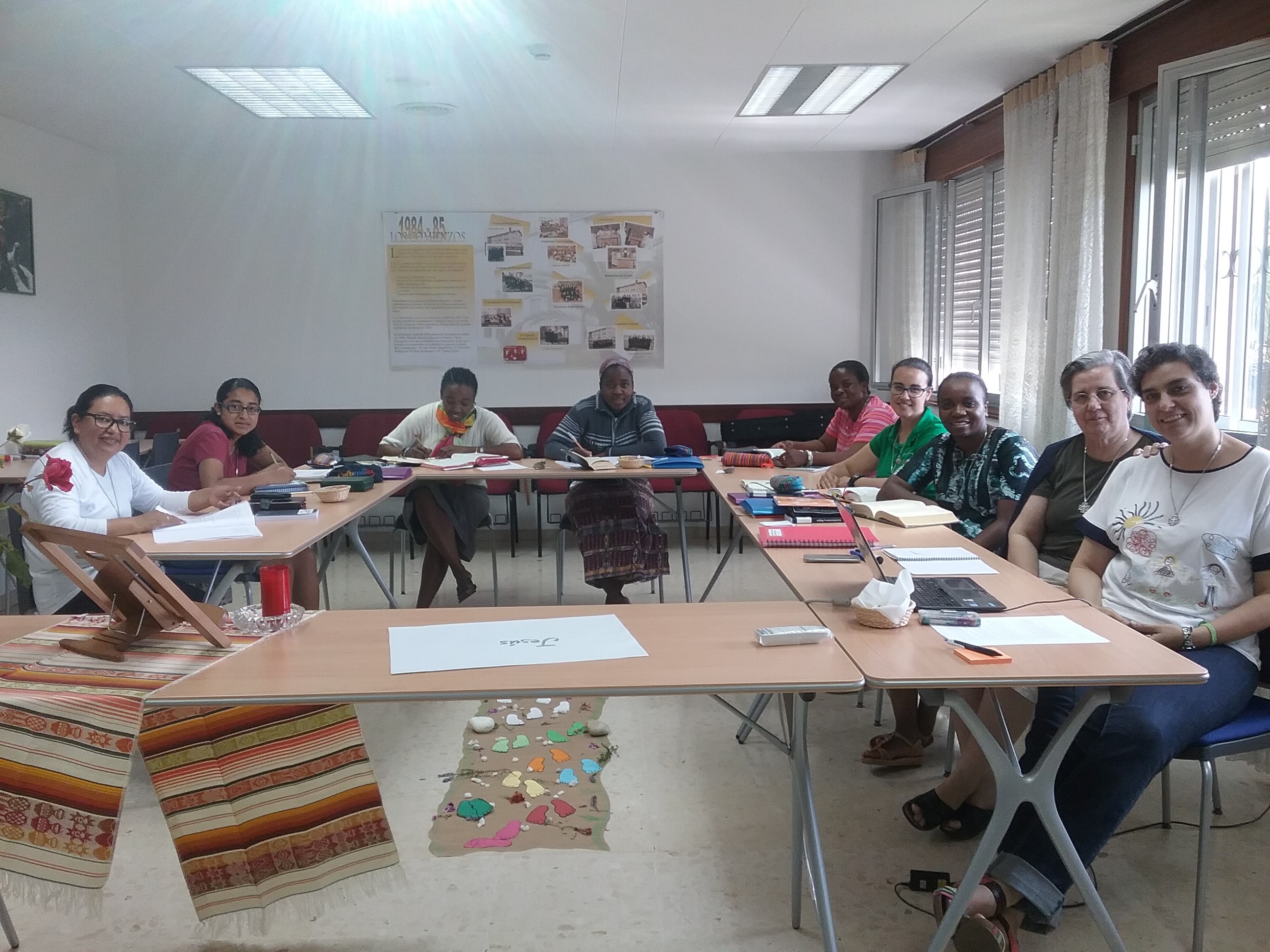 Con este lema están participando durante el mes de julio y agosto en el curso de Preparación para la Profesión Perpetua M. Elizabeth, M. Martina, M. Johana, M. Odette, M. Blenderline, M. Domitila y M. Noella, acompañadas por M. Mª Luisa Domínguez, Vicaria General.