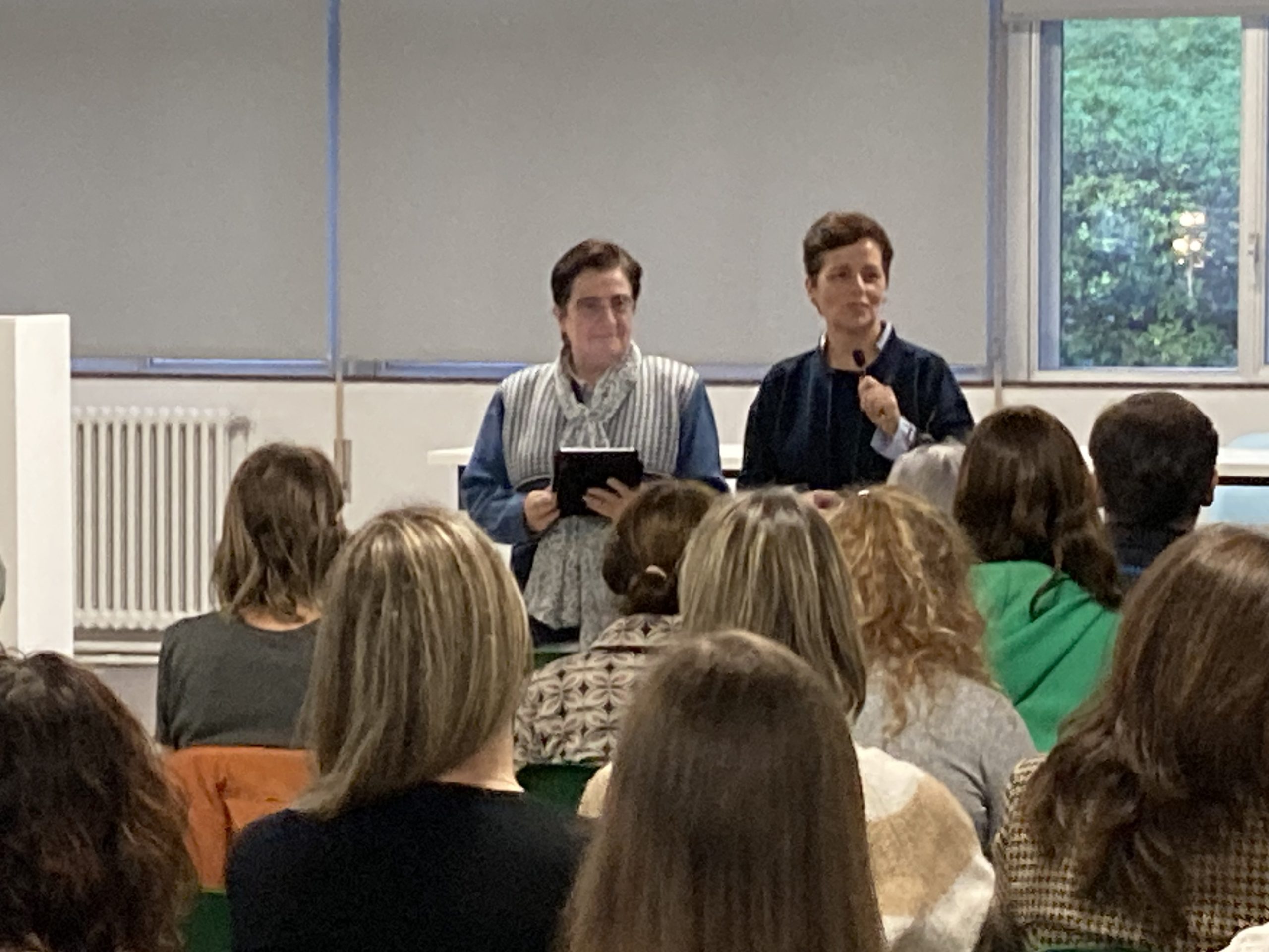 En estos días, a demás de reunirse con la comunidad y acompañarlas en su día a día, se está reuniendo con los distintos grupos del colegio. El lunes tuvo un encuentro con el claustro de profesores a quienes invitó a ser especialistas en el arte de hacer la felicidad humana, en el arte de crear humanidad en la escuela y en el arte de construir puentes; también tuvo la oportunidad de reunirse con el grupo de Participación de Misión Compartida.