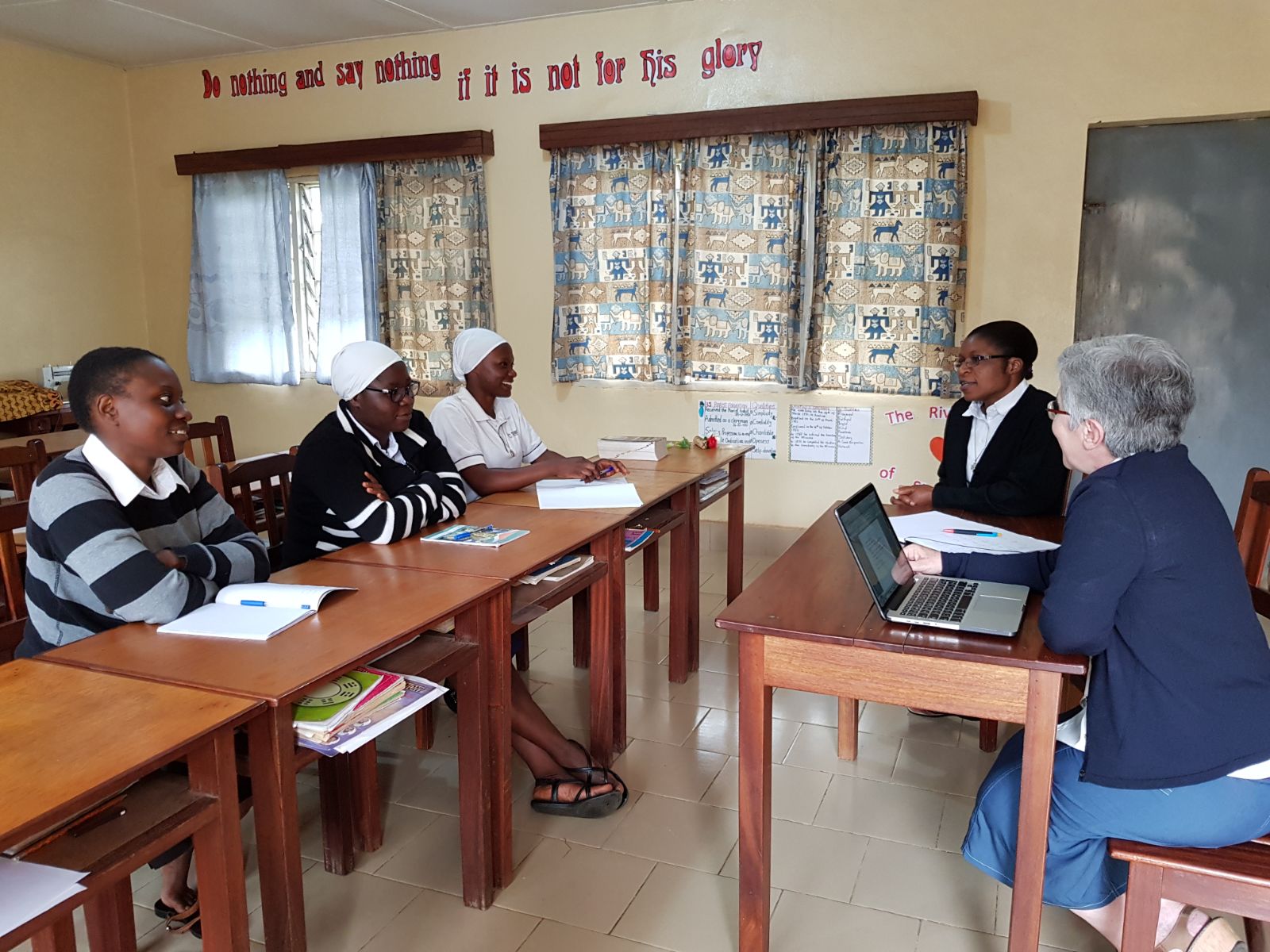 En estos días de encuentro y compartir con la comunidad tienen la oportunidad de conocer, más de cerca, la misión que las hermanas realizan allí. Han saludado a las profesoras y trabajadoras del colegio, se han reunido con las novicias, postulantes y aspirantes, y han compartido con las más pequeñas que están en la Casa Hogar y con las mujeres del centro de promoción.