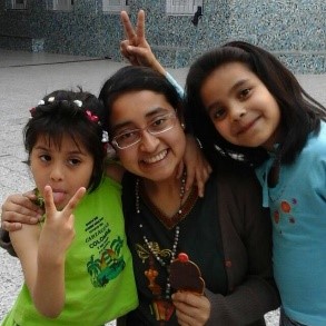 > Mujeres que seguimos a Cristo, Buen Pastor, que nos conoce, nos ama y nos guía; que pasó por la vida haciendo el bien; que abrazaba y bendecía a los niños.