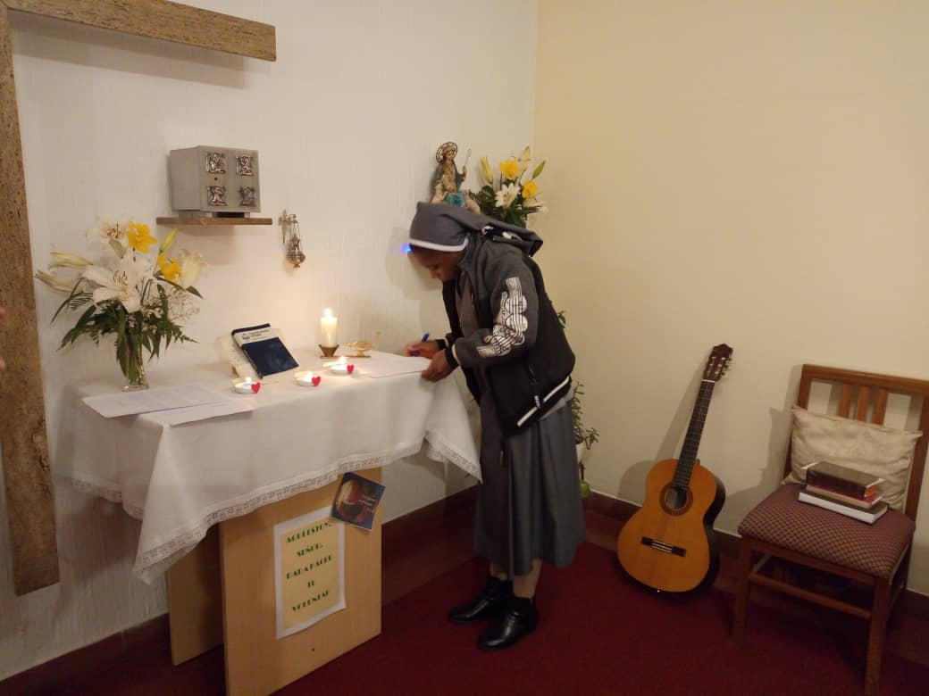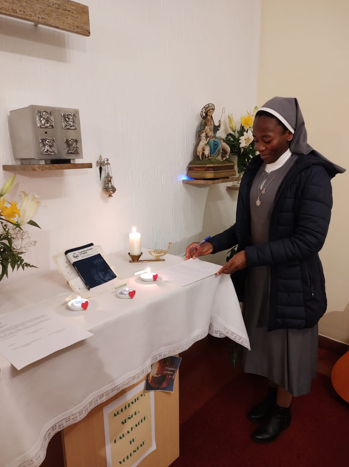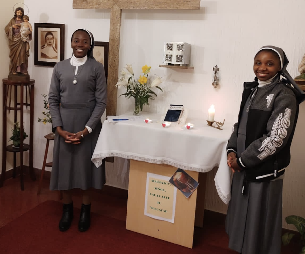 El día 9 en Montevideo, nuestras hermanas Germaine Biye y Lovette Mengla, realizaron su 5ª renovación de votos en la celebración de vísperas. M. Marta López, superiora de la comunidad, recibió los votos en nombre de la M. General.