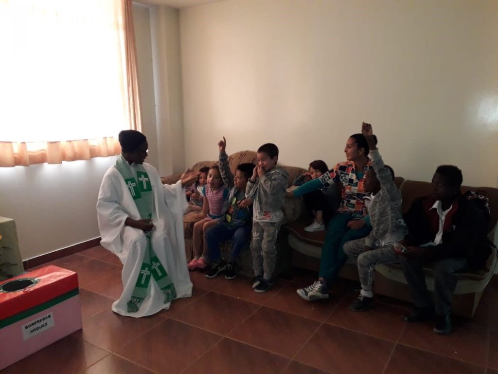 Los que forman el segundo grupo almuerzan, tienen sus actividades, les damos refrigerio y a las cinco se van a sus casa. Tenemos este ritmo de lunes a viernes. Los sábados colaboramos en la catequesis parroquial.