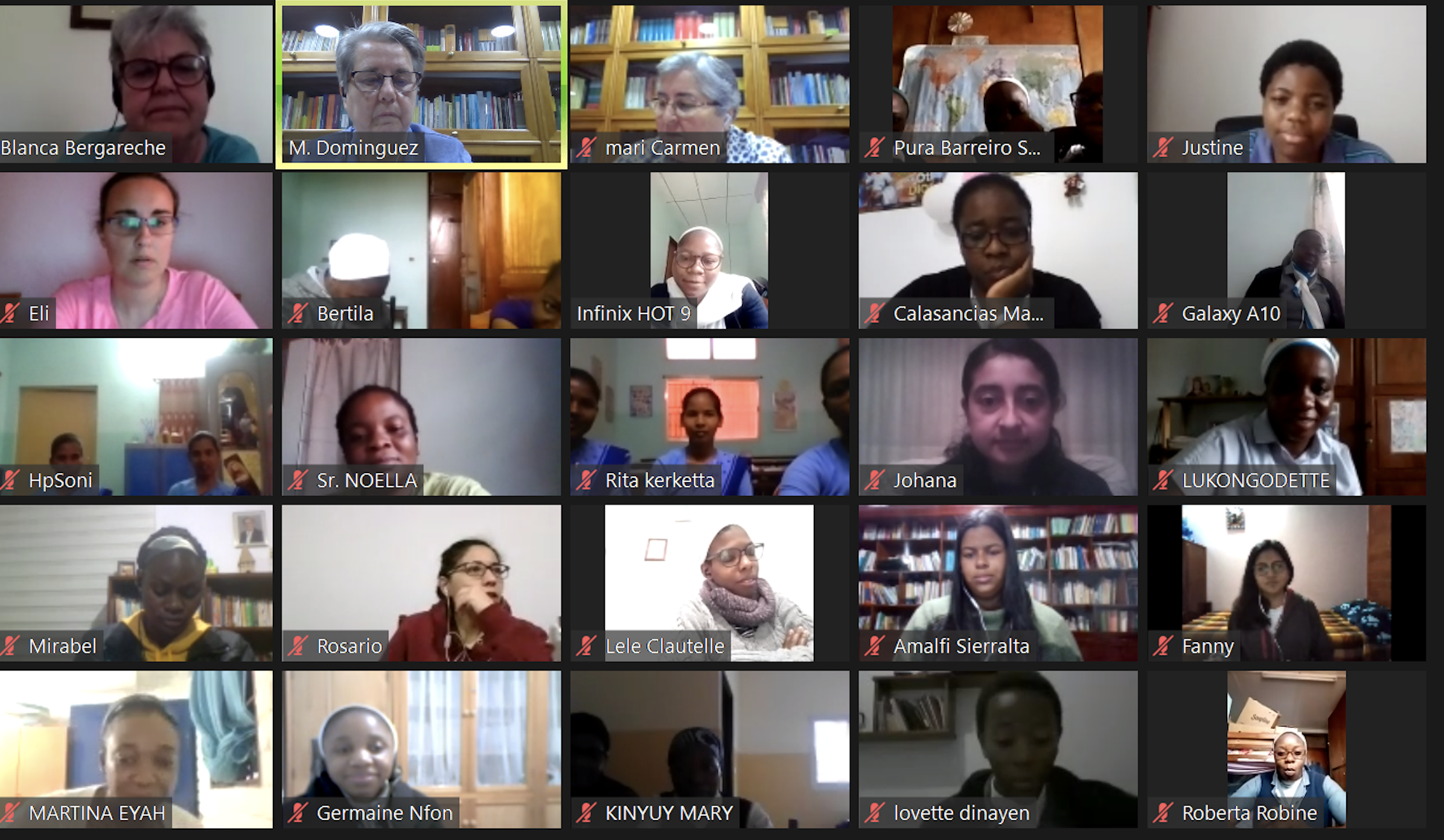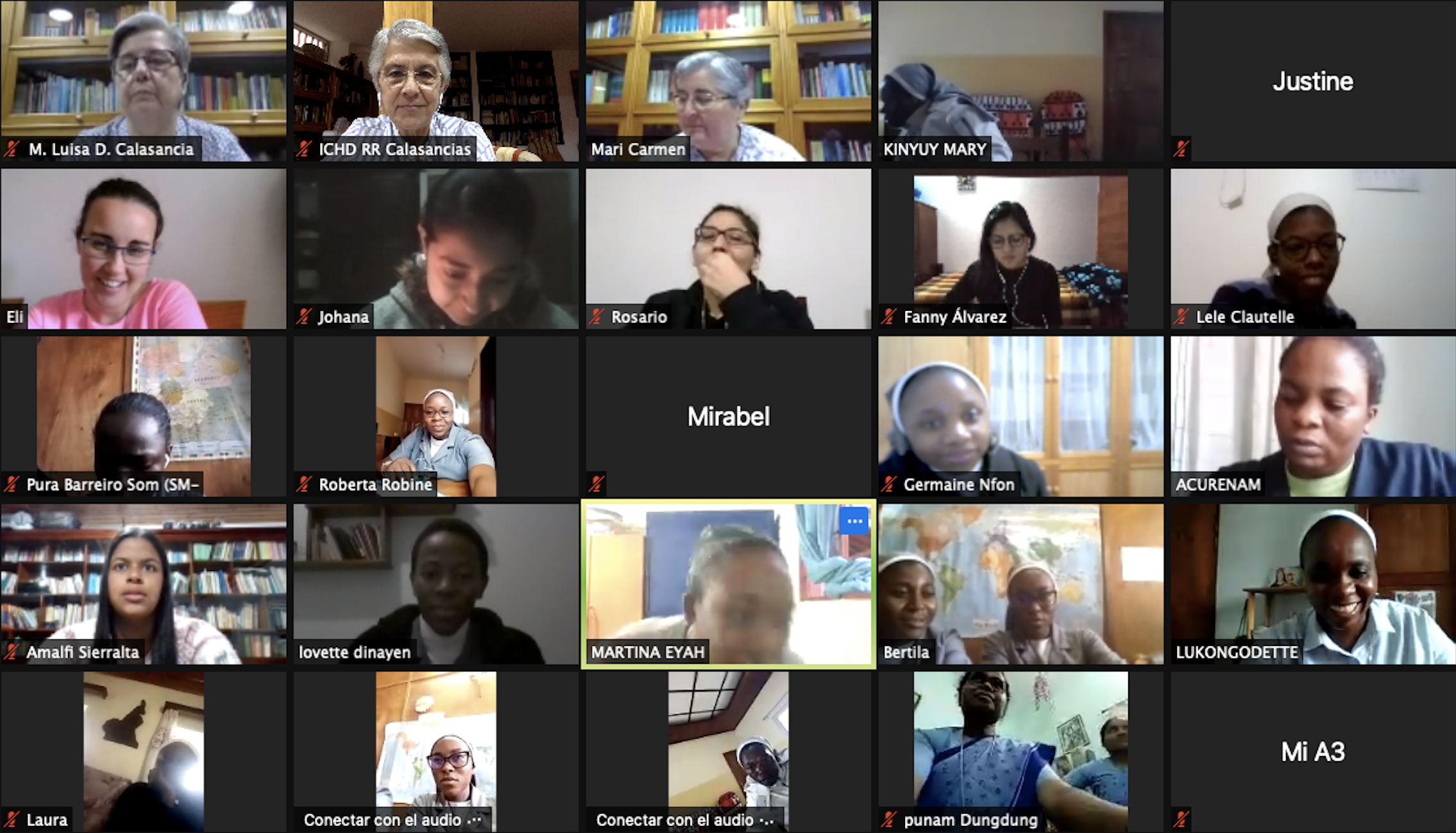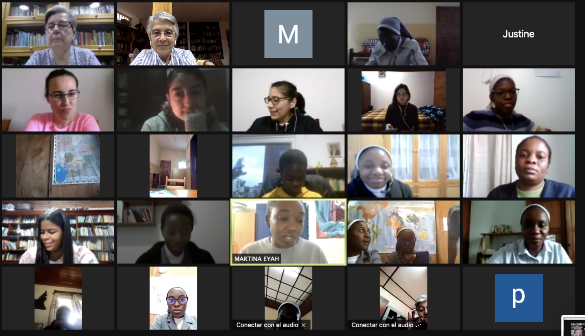 Tras un breve descanso, y en el marco de este tiempo de encuentro y formación, se integran a la sesión 33 religiosas jóvenes presentes en los 4 continentes y en 7 países, para participar en el Encuentro de Religiosas Jóvenes que se celebrará hasta el día 9. Después de una breve presentación de cada hermana, M. Sacramento C. hace la apertura oficial, dirigiéndose a las jóvenes y expresándoles cómo nuestras comunidades necesitan de las religiosas jóvenes, de su vitalidad, de su inquietud, de sus deseos de crecer, de sus sueños; y que ellas como religiosas jóvenes, no se pueden olvidar que, en su camino de seguimiento al Señor, necesitan de las mayores, de su experiencia. Nuestras comunidades necesitan de jóvenes que vivan la vida religiosa como un encuentro vivo con el Señor, que se dejan afectar por la realidad que vivimos… que se empeñan y trabajan cada día por construir comunidad, amantes de la formación, del estudio, para estar más preparadas en la misión.