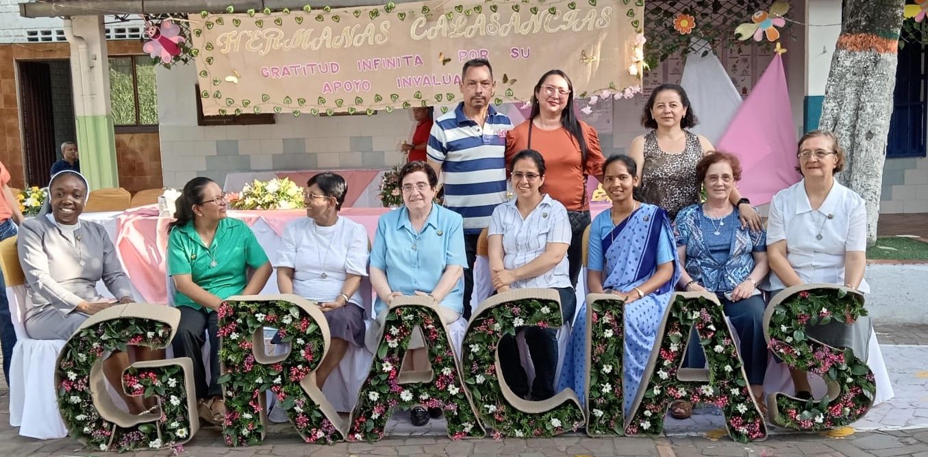 Los pequeños del Hogar Infantil, padres, docentes, antiguos alumnos, profesoras jubiladas, feligreses de la parroquia, el Vicario de religioso, el párroco, el director nacional y regional de Fe y Alegría, empleados, miembros de Misión Compartida… todos se han ido congregando en diversos momentos para dar gracias a Dios y al Instituto por estos 49 años y medio de entrega a la evangelización, a la educación de niños y jóvenes, al trabajo en la parroquia de tantas hermanas que han pasado por este lugar y ha dejado su huella.