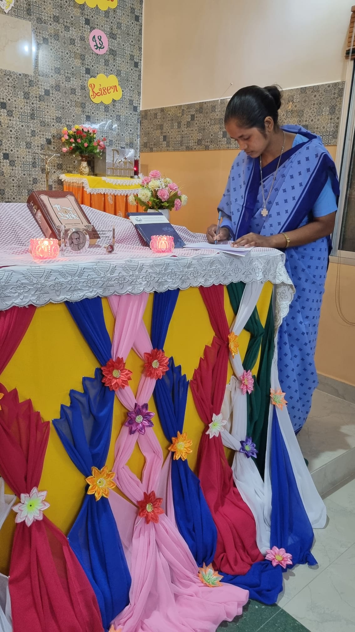 Hoy en la comunidad de Ranchi nuestras hermanas Anuja Toppo y Anima Dungdung han realizado su tercera y cuarta renovación de votos respectivamente. M. Mª Carmen Sánchez, superiora de la comunidad, los ha recibido en nombre del Instituto.