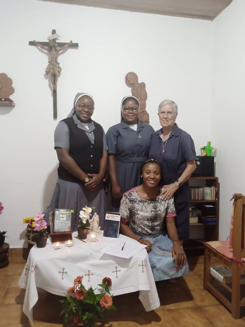 En la tarde del día 15, en la comunidad de Akurenan, M. Nnam Mildrate Kum realizó su cuarta renovación de votos. M. Regla Sanjosé recibió los votos en nombre de la M. General.