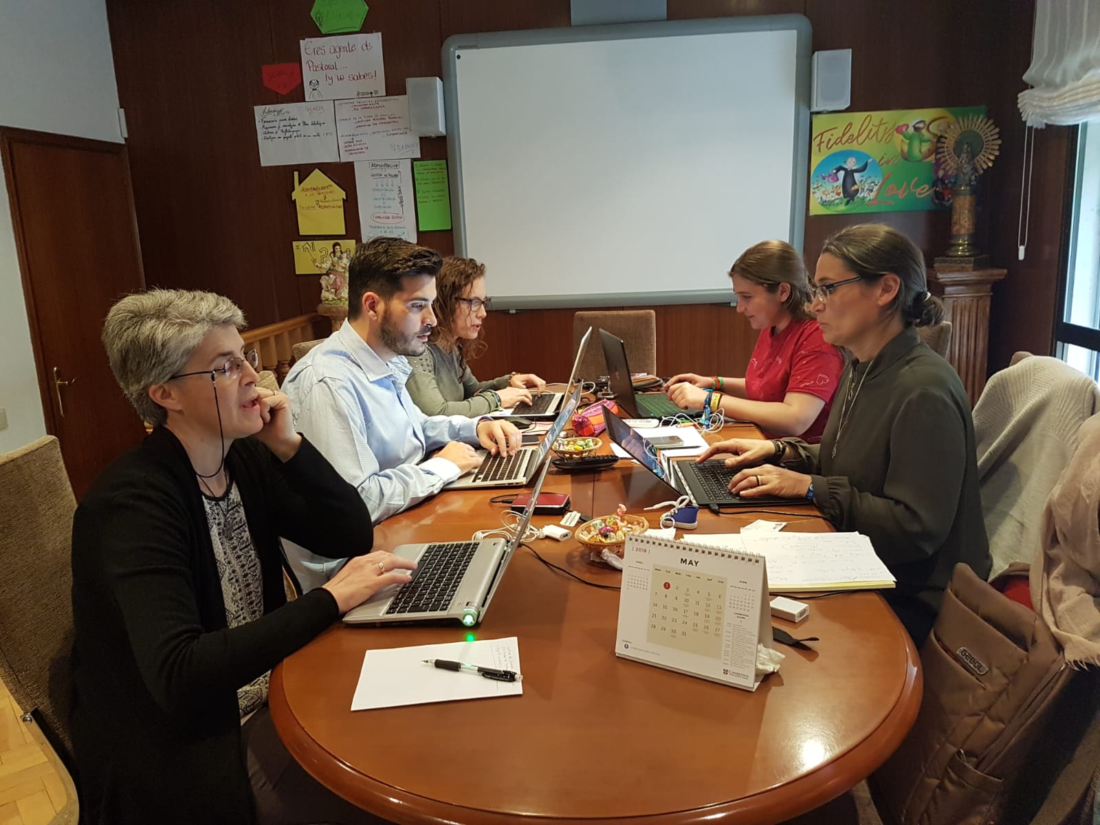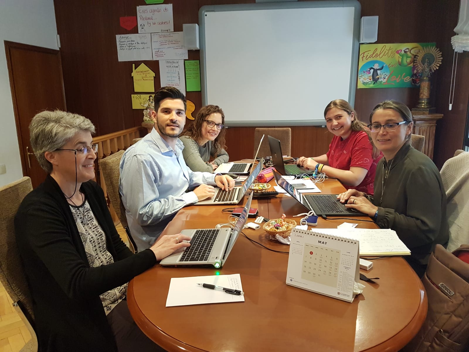 La comisión formada por M. Rocío Vázquez, Encarni Ruiz, M. Eva Morcillo, Juan Antonio Soria y M. Conchi Ruiz para organizar la ruta calasancia de 2018, se reúne los días 11, 12 y 13 de mayo en nuestra casa del Gobierno General para continuar preparando esta actividad.